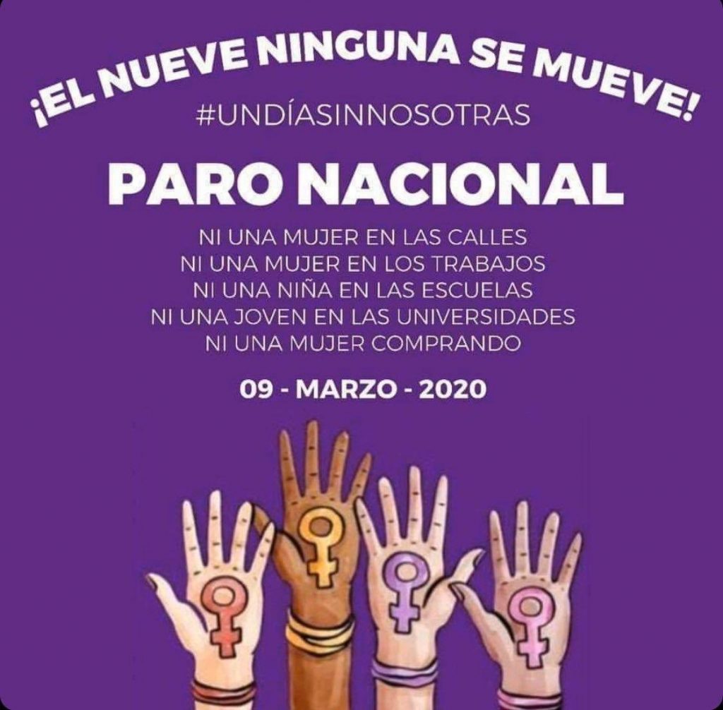 Eso aparece en un logo de las mujeres, que convocan a un paro nacional de actividades el día nueve de marzo para protestar por causa de la violencia que se ejerce sobre ellas y la frecuencia de los feminicidios.
