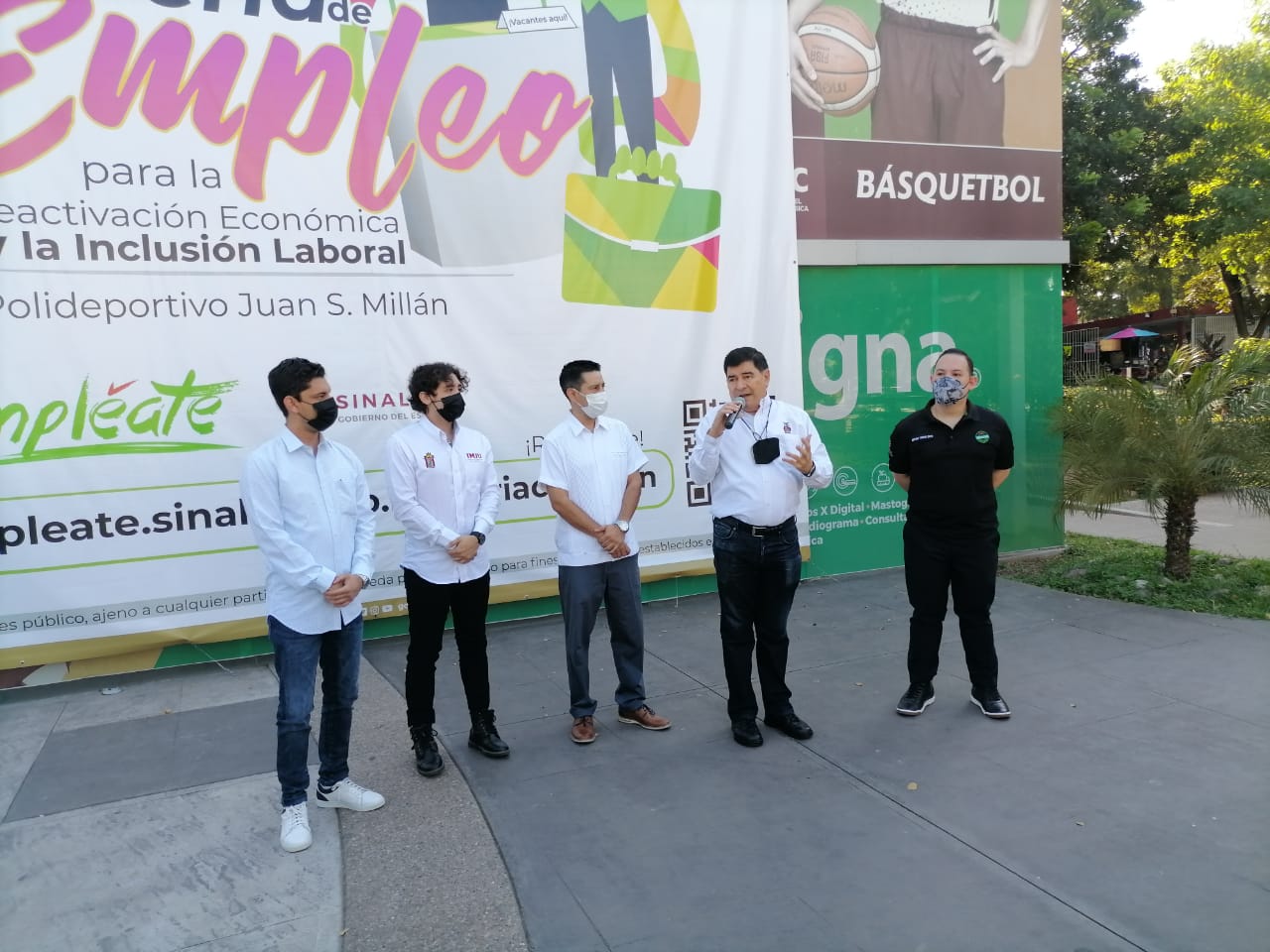 Participaron en el evento de arranque de la Feria de Empleo, el Director del Servicio Nacional del Empleo en Sinaloa, Arturo Torres Sato; Beny Corrales Vega, Delegado Estatal del Programa Jóvenes Construyendo el Futuro; Roberto Aguilar Ramos, Director del Instituto Sinaloense de la Juventud; Erick Zamora, Director del IMJU y personas interesados en la búsqueda de una vacante laboral.