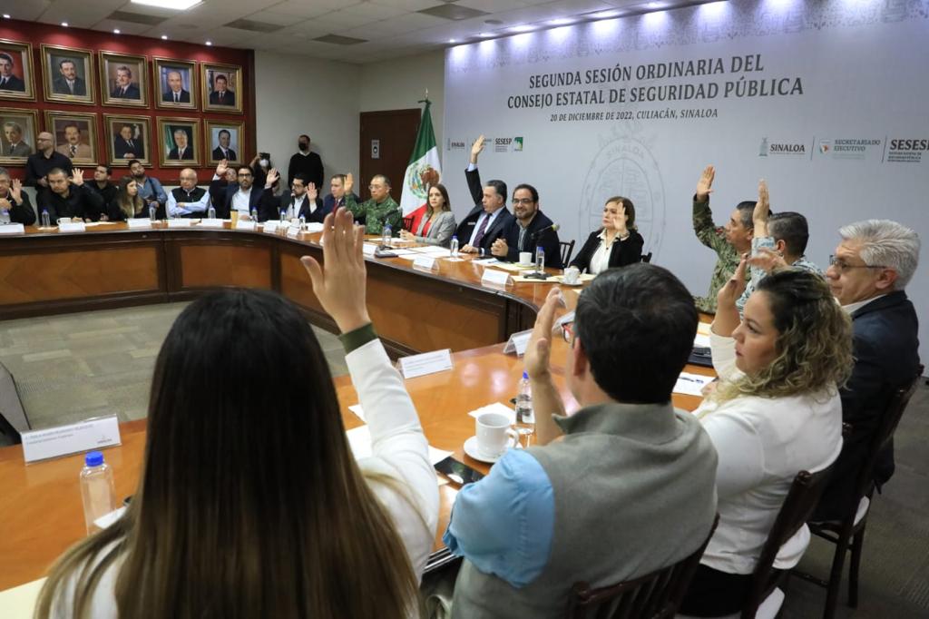 Otro acuerdo es que el presidente del Consejo Estatal de Seguridad, quien es el gobernador Rubén Rocha Moya, proponga ante el Congreso local una iniciativa de reforma a la Ley de Seguridad Pública del Estado de Sinaloa en materia de Servicio Profesional de Carrera Policial, la cual contendrá las bases que regirán en esta materia a las corporaciones policiales estatales y municipales.