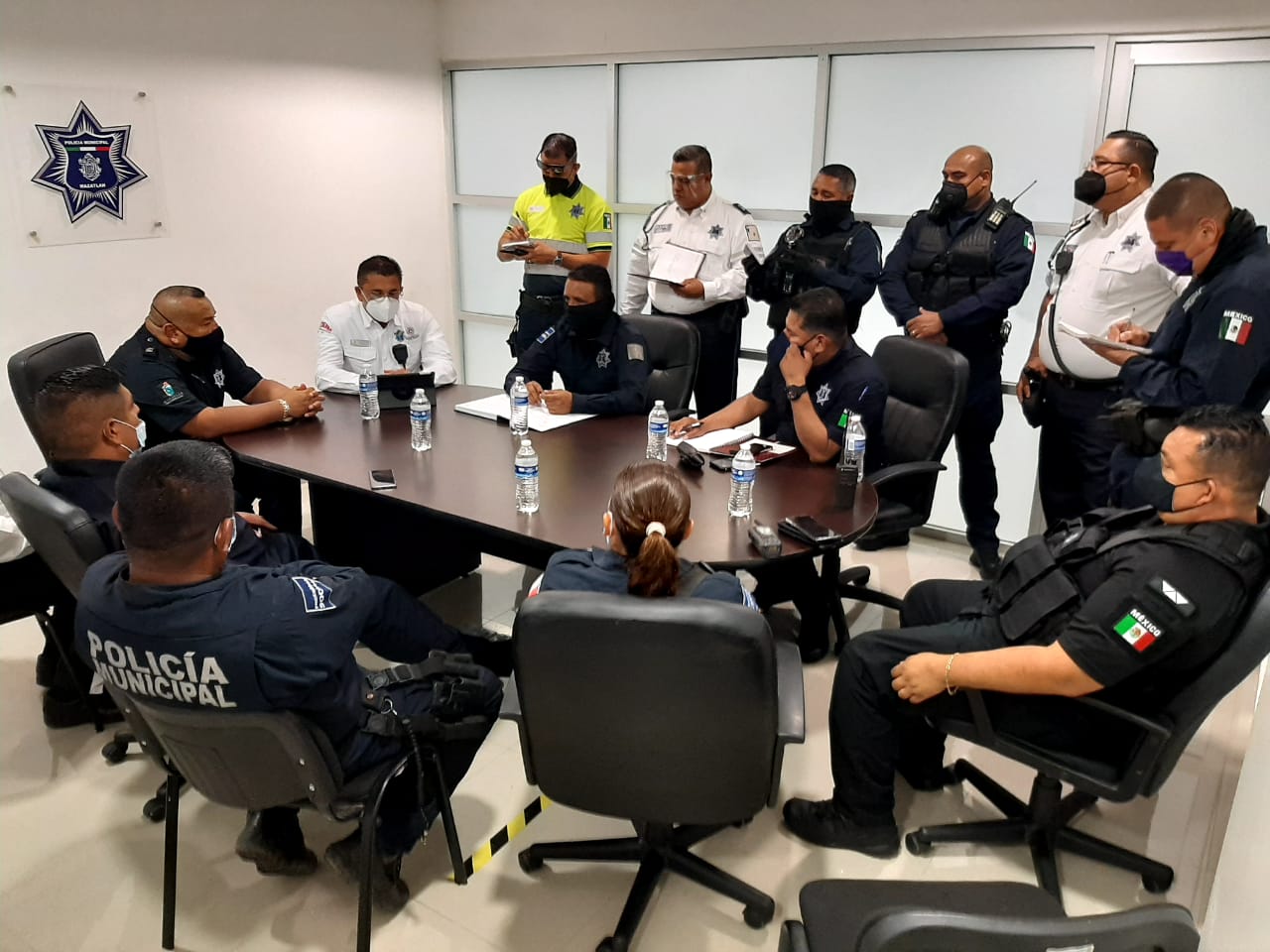 Posteriormente, el encargado de despacho de la Secretaría de Seguridad Pública y Tránsito Municipal, Juan Ramón Alfaro Gaxiola encabezó una reunión con comandantes y jefes operativos, para dar las indicaciones de esta estrategia de vigilancia.