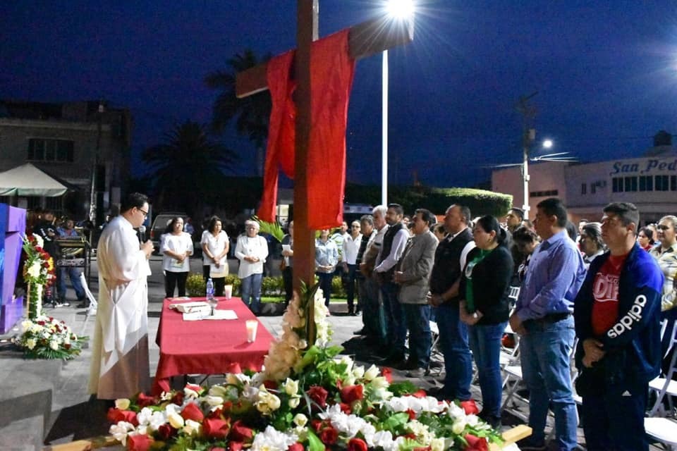 Ahí, Escobar Manjarrez, acompañado por regidores y funcionarios municipales, colocó la cruz y ofrenda floral.
