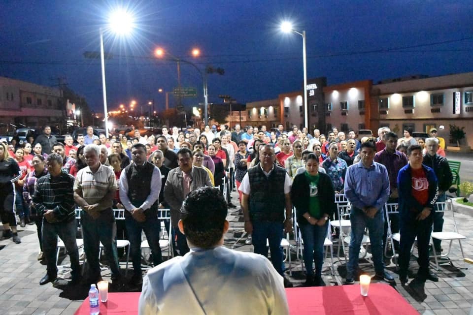 La banda sinaloense acompañó con su música a los servidores públicos y vecinos, para culminar el recorrido en el Monumento a La Cruz, en donde se ofició una misa por el padre de la Iglesia de Nuestra Señora de Guadalupe.