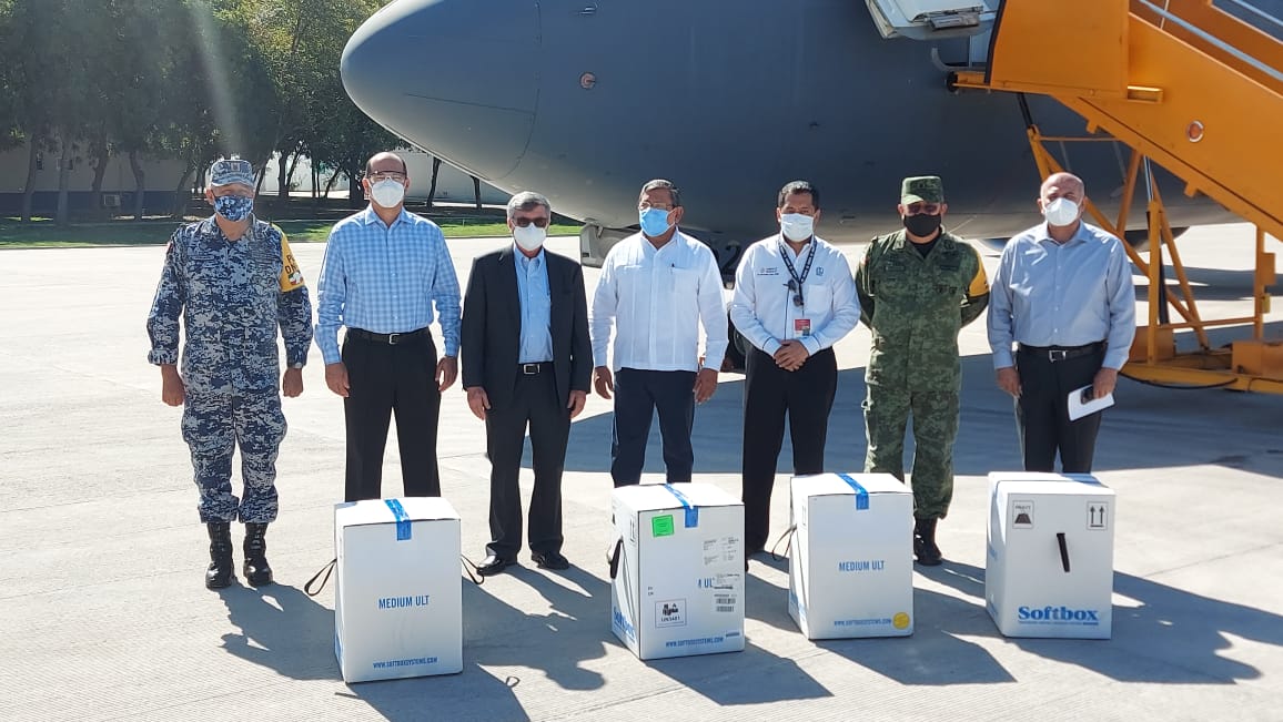 Culiacán, Sinaloa, a 24 de febrero de 2021.- El Comando Estatal de Vacunación en Sinaloa, recibió la mañana de este miércoles un lote de 16 575 dosis de la vacuna Pfizer para proteger al personal de primer nivel de atención del sector salud de la entidad, incluyendo además a Protección Civil, Cruz Roja, Colegios Médicos afines que están atendiendo pacientes COVID en la medicina privada y adultos mayores.