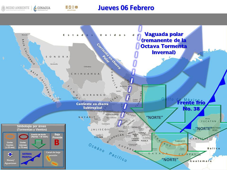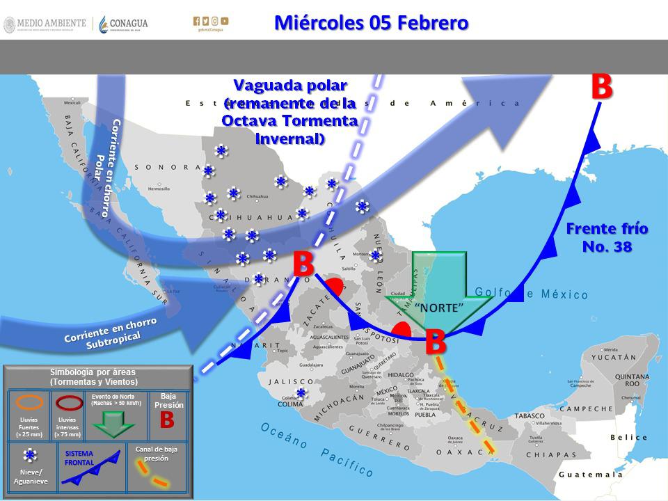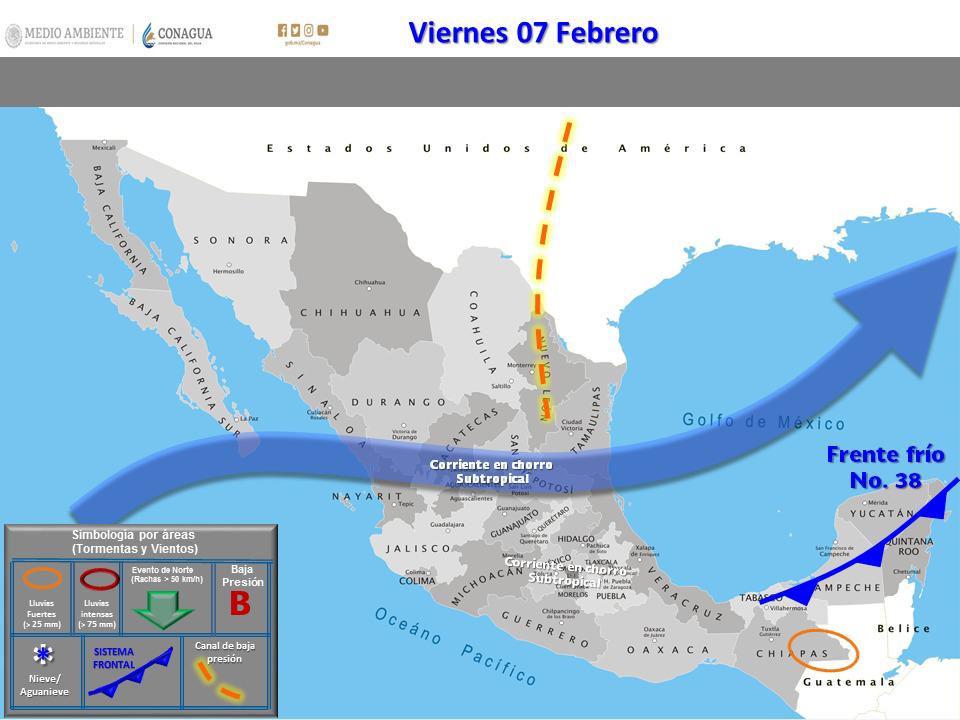 Culiacán, Sinaloa, 04 de febrero del 2020. La presencia del Frente Frío No. 38 se extiende sobre el noroeste y norte de México, mientras que la octava tormenta invernal de la temporada se localiza al suroeste de Estados Unidos, provocando un descenso en las temperaturas en el estado de Sinaloa, Protección Civil Estatal reitera el llamado a la población a tomar las medidas de precaución necesarias ante las bajas temperaturas.