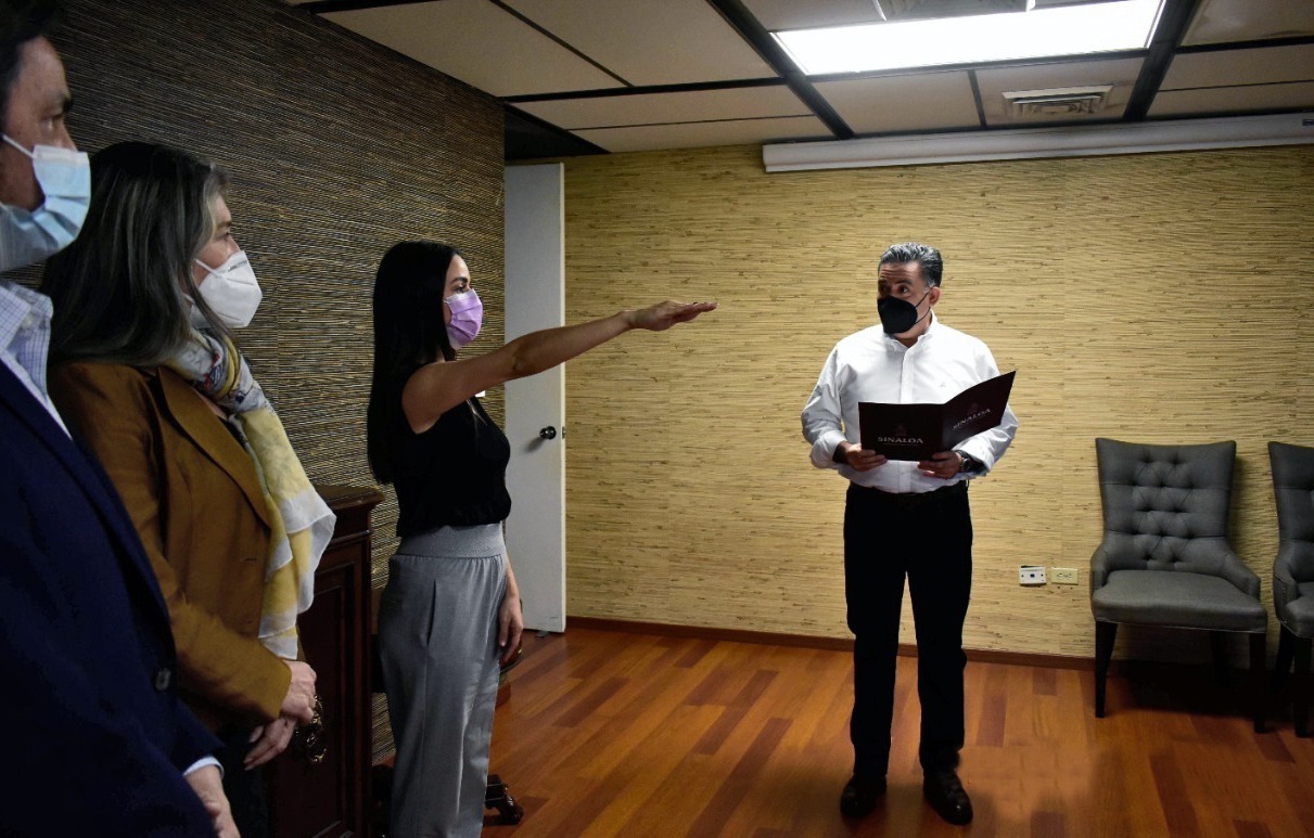 El Secretario General de Gobierno, Lic. Enrique Inzunza Cázarez al tomar protesta en su nuevo cargo a la funcionaria, reiteró como compromiso rector el bienestar de las y los sinaloenses basado en el respeto pleno y la eficacia de sus derechos humanos, por lo que en presencia del Subsecretario General de Gobierno, C.