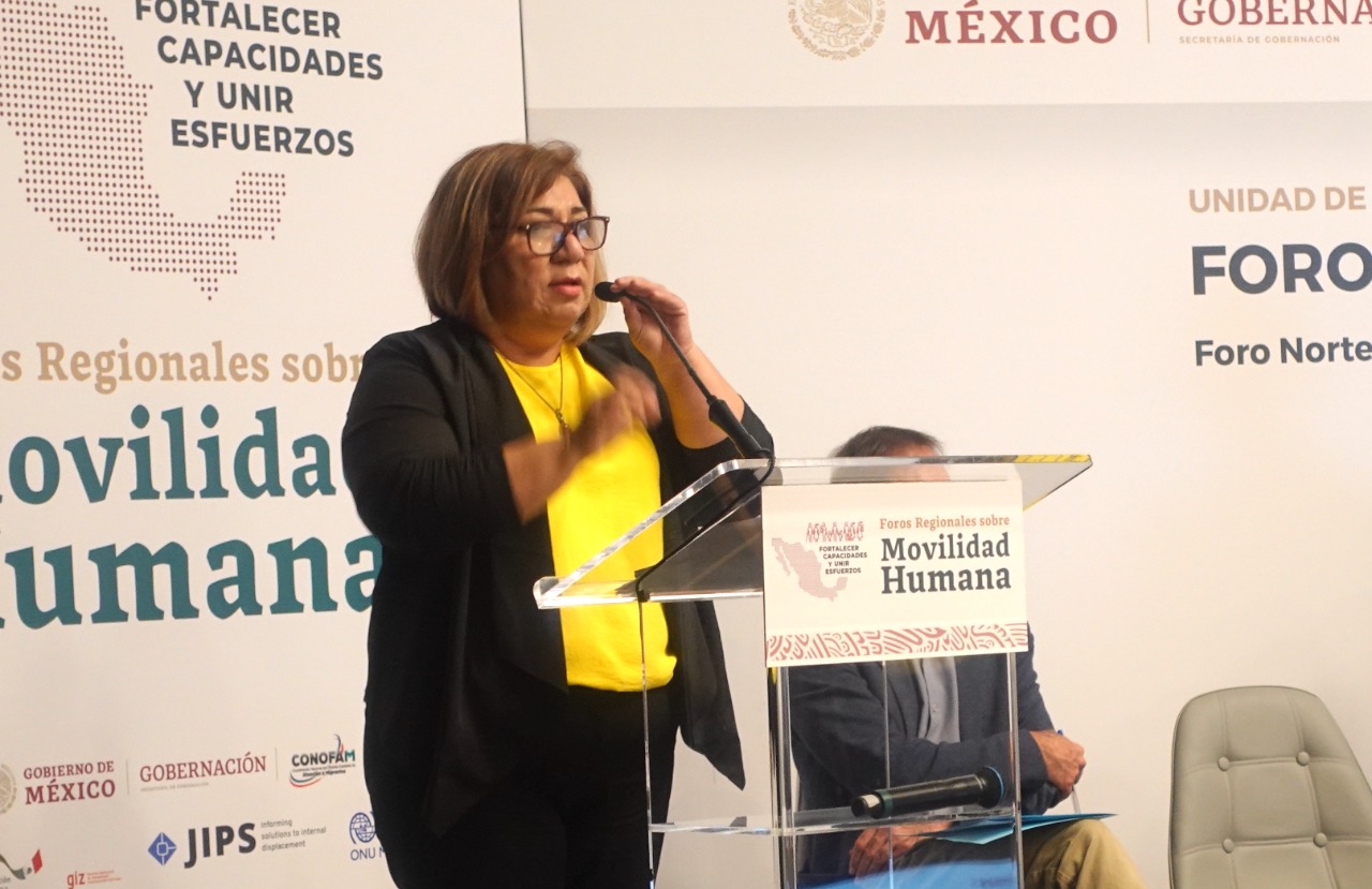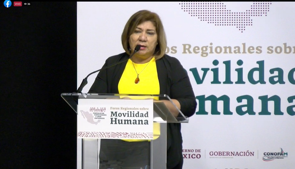 Durante el 2do. Foro Regional Sobre Movilidad Humana realizado por la Secretaría de Gobernación Federal, la titular de SEBIDES, María Inés Pérez Corral,