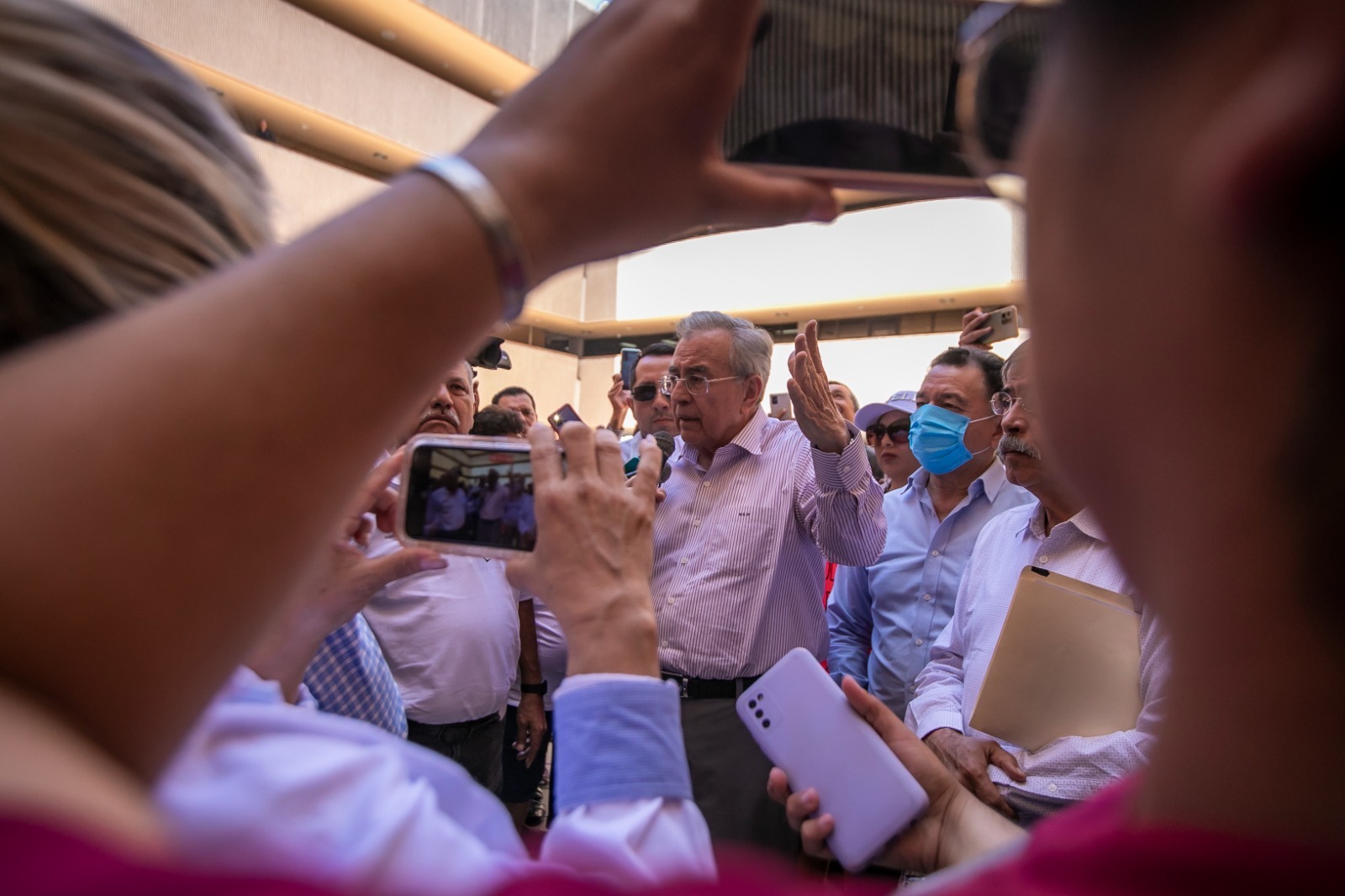 Culiacán, Sinaloa, a 27 de Abril de 2023.- Como parte de la política estatal de atención prioritaria a grupos vulnerables, el Gobernador Rubén Rocha Moya, atendió personalmente a un grupo de ciudadanos que hicieron acto de presencia en Palacio de Gobierno para solicitar lotes de terreno y acceso a vivienda social, quienes forman parte de la Coordinadora Estatal por el Derecho Humano a la Vivienda y Reservas Territoriales, organización integrada por diferentes agrupaciones estatales, cuyos líderes, Marco Antonio García Espinoza, Miguel Ángel Gutiérrez Sánchez, Oscar Loza Ochoa y Noé Salvador Rodríguez Peñuelas, tuvieron una reunión previa con el mandatario estatal.