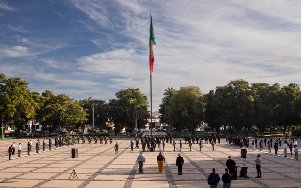 • Con el fin de conmemorar el 109 aniversario del Ejército Mexicano, autoridades civiles y militares llevaron a cabo la ceremonia de izamiento de bandera a toda asta con Honores de Ordenanza en la plaza cívica de Palacio de Gobierno.