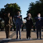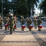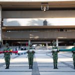 • Por el 191 aniversario luctuoso de Vicente Guerrero y a su vez, el 143 aniversario luctuoso de Agustina Ramírez, autoridades civiles y militares llevaron a cabo la ceremonia de izamiento de bandera a media asta con Honores de Ordenanza en la plaza cívica de Palacio de Gobierno.