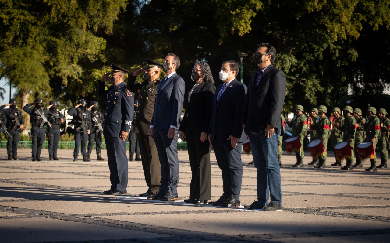 • Por el 191 aniversario luctuoso de Vicente Guerrero y a su vez, el 143 aniversario luctuoso de Agustina Ramírez, autoridades civiles y militares llevaron a cabo la ceremonia de izamiento de bandera a media asta con Honores de Ordenanza en la plaza cívica de Palacio de Gobierno.