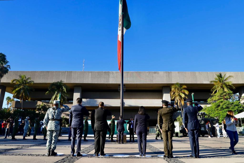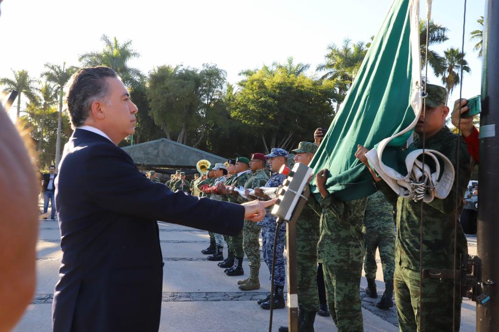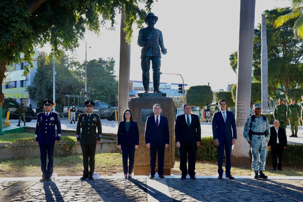 En representación del gobernador Rubén Rocha Moya, el secretario General de Gobierno Enrique Inzunza Cázarez encabezó esta conmemoración, acompañado de la presidenta de la Diputación Permanente del H. Congreso del Estado Juana Minerva Vázquez González, el presidente del Supremo Tribunal de Justicia Jesús Iván Chávez Rangel, el secretario del Ayuntamiento de Culiacán José Ernesto Peñuelas Castellanos, el comandante de la 9/a Zona Militar Alfredo Salgado Vargas, el comandante del 9/o Batallón de la Guardia Nacional Omar Alberto Zarazúa y el comandante de la Base Aérea Militar No. 10 José Miguel de Luna Genel.