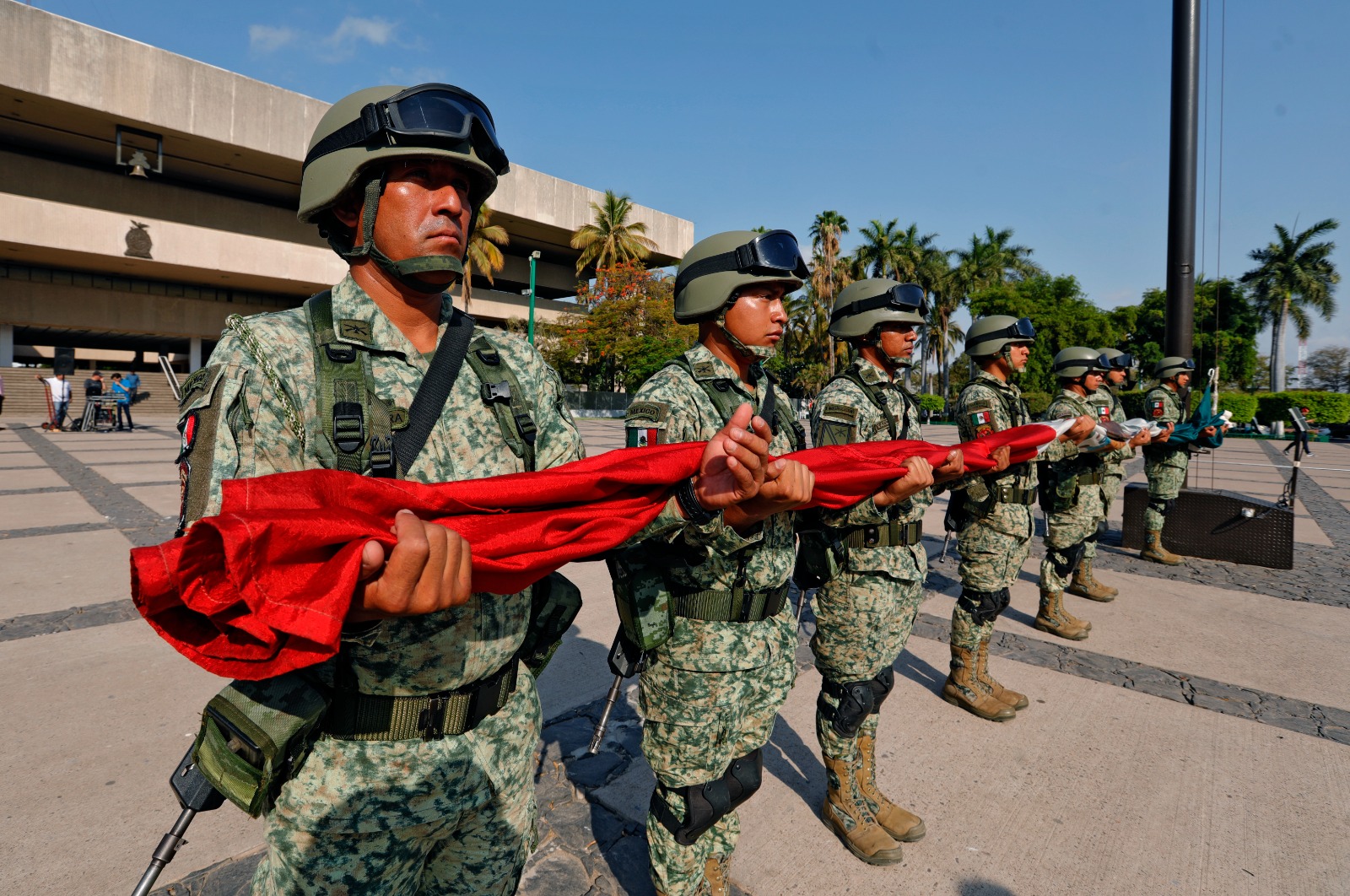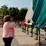 Culiacán, Sinaloa, 21 de junio del 2023.- Autoridades civiles y militares conmemoraron el aniversario número 156 de la victoria de las armas nacionales sobre el imperio en 1867 con un izamiento de bandera a toda asta y con Honores de Ordenanza en la plaza cívica de Palacio de Gobierno.