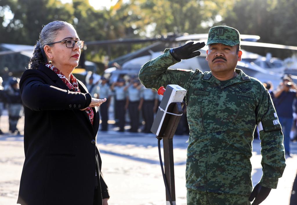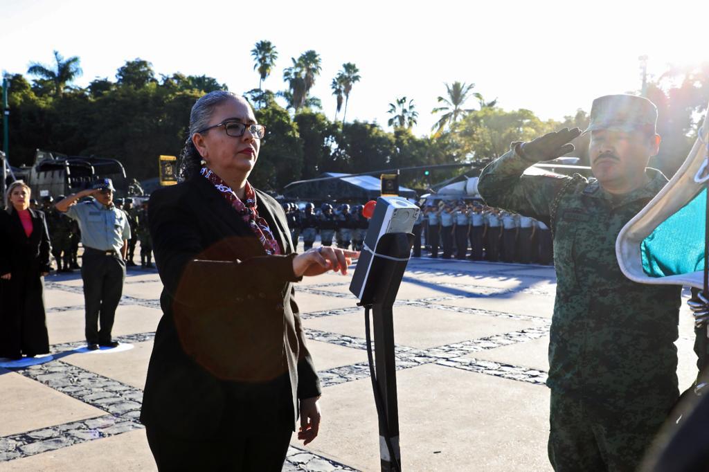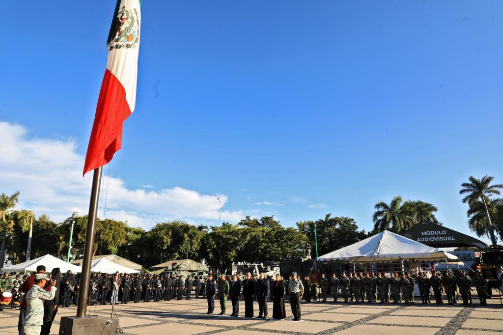 En representación del gobernador Rubén Rocha Moya, la secretaria de Educación Pública y Cultura Graciela Domínguez Nava encabezó este acto conmemorativo acompañada del presidente de la Mesa Directiva del H. Congreso del Estado Ricardo Madrid Pérez, el presidente del Supremo Tribunal de Justicia del Estado Jesús Iván Chávez Rangel, la secretaria de Bienestar del Municipio de Culiacán Aline Krystabel Guerra García, el teniente coronel a cargo de la Novena Zona Militar Adán Landeros Espinoza, el inspector de la Guardia Nacional Braulio Sánchez Martínez y el representante de la Base Aérea Militar número 10 Isaac Terrazas Sevilla.