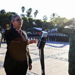 Culiacán, Sinaloa, 14 de febrero del 2022.- Autoridades civiles y militares conmemoraron el aniversario luctuoso número 192 del general Vicente Guerrero y el aniversario luctuoso número 144 de Doña Agustina Ramírez, con un izamiento de bandera a media asta y con Honores de Ordenanza en la plaza cívica de Palacio de Gobierno.