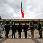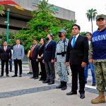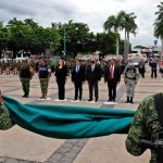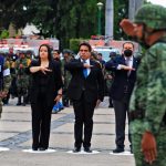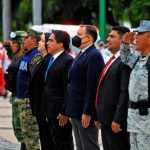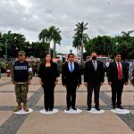 Culiacán, Sinaloa, 19 de septiembre del 2022.- Autoridades civiles y militares conmemoraron el Día Nacional de Protección Civil con un izamiento de bandera a media asta y con Honores de Ordenanza en la plaza cívica de Palacio de Gobierno.