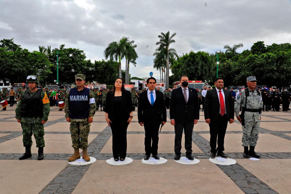 El director de Protección Civil Estatal Aurelio Roy Navarrete Cuevas encabezó este evento, acompañado de la diputada Cinthia Valenzuela Langarica, el magistrado Jesús Iván Chávez Rangel, el coordinador Municipal de Protección Civil Jesús Bill Mendoza Ontiveros, el coordinador Estatal de la Guardia Nacional en Sinaloa Ramiro Ramírez López, el teniente de Infantería de la Novena Zona Militar Lucio Ortega Rosa y el coronel de Infantería de la Guardia Nacional Fidencio Márquez Reyes.