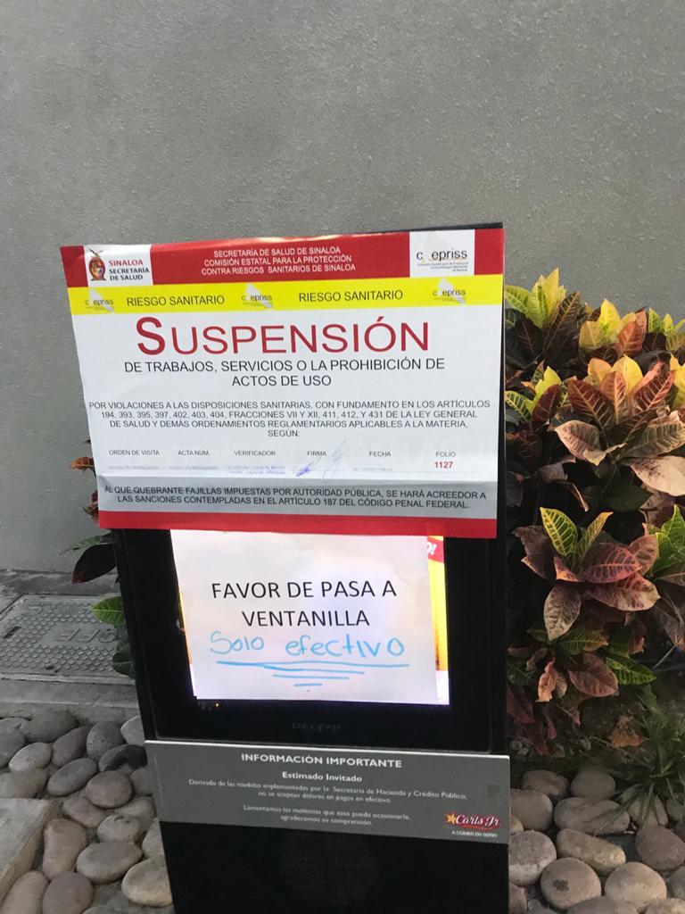 Culiacán, Sinaloa a 4 de mayo de 2020.- En el marco de las acciones contra el Covid-19, la Comisión Estatal contra Riesgos Sanitarios informó que se han clausurado 23 negocios y cerrado 74 por incumplir las disposiciones sanitarias.