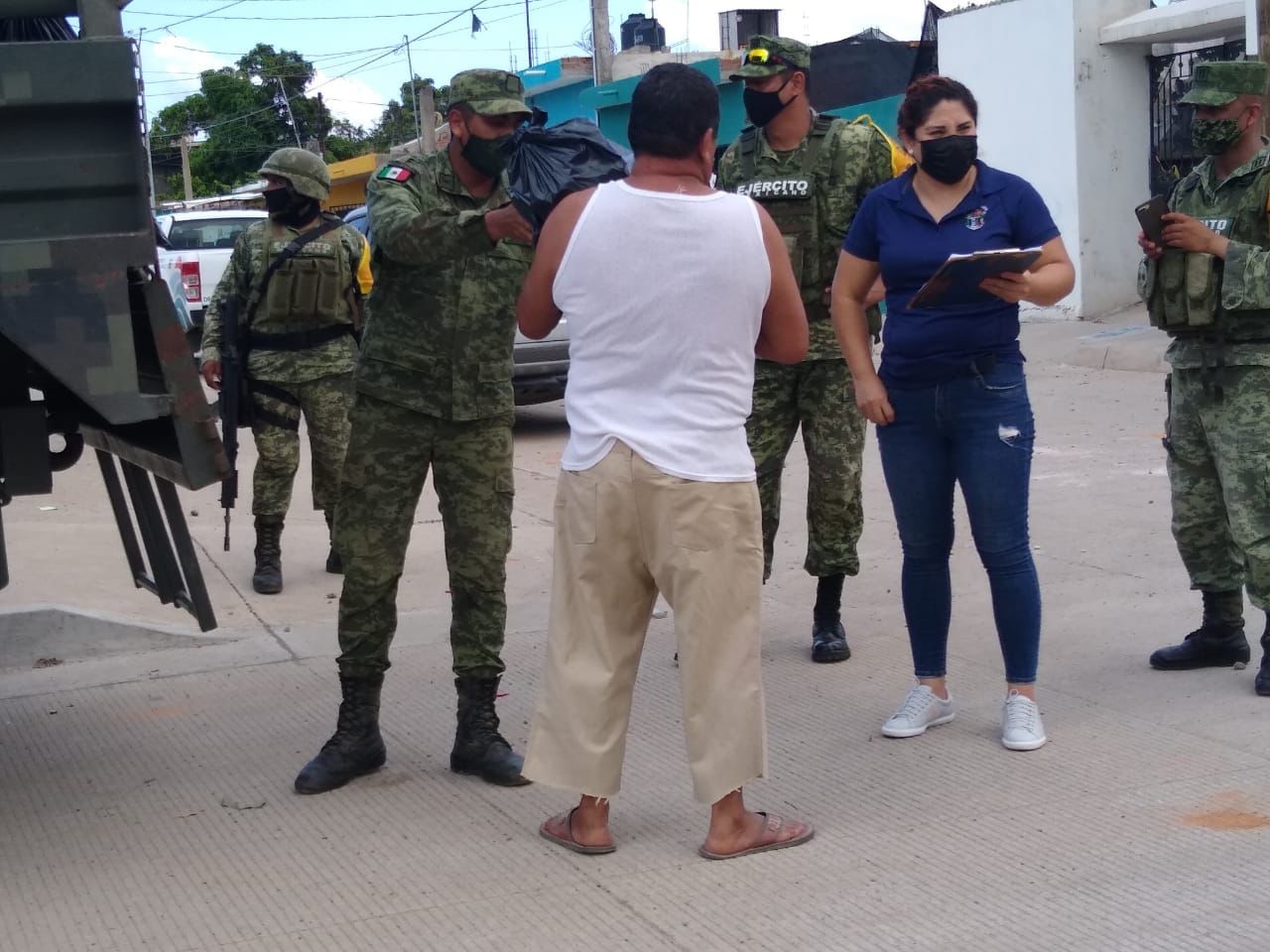 Tonatiú Guerra Martínez, titular de Bienestar Social, destacó el apoyo de las fuerzas armadas al brindar ayuda a las familias que sufrieron los embates de «Nora» en Mazatlán, y expresó el agradecimiento del Químco Benitez Torres hacia los militares por tan loable labor.