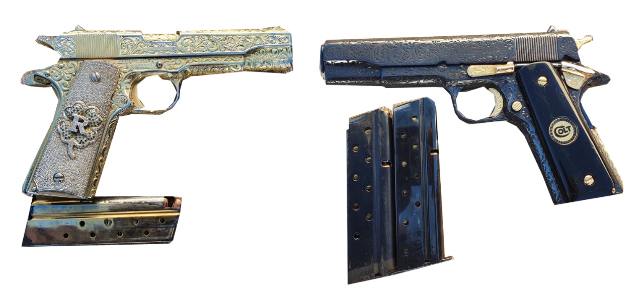 Al darles alcance, tres hombres descendieron de la unidad. Los uniformados notaron que dos de ellos llevaban, fajada en la cintura, lo que parecían ser armas de fuego por lo que los revisaron y, efectivamente, dos de ellos tenían, cada uno, un arma de fuego corta con su cargador abastecido para lo cual no contaban con el permiso de portación correspondiente.