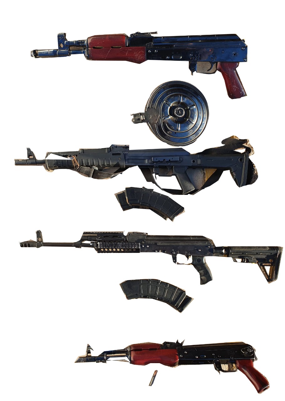 Ante esta situación, los Policías Estatales revisaron la unidad; ahí encontraron cuatro armas largas también con sus cargadores, además de otros cargadores para armas largas de diferentes calibres.