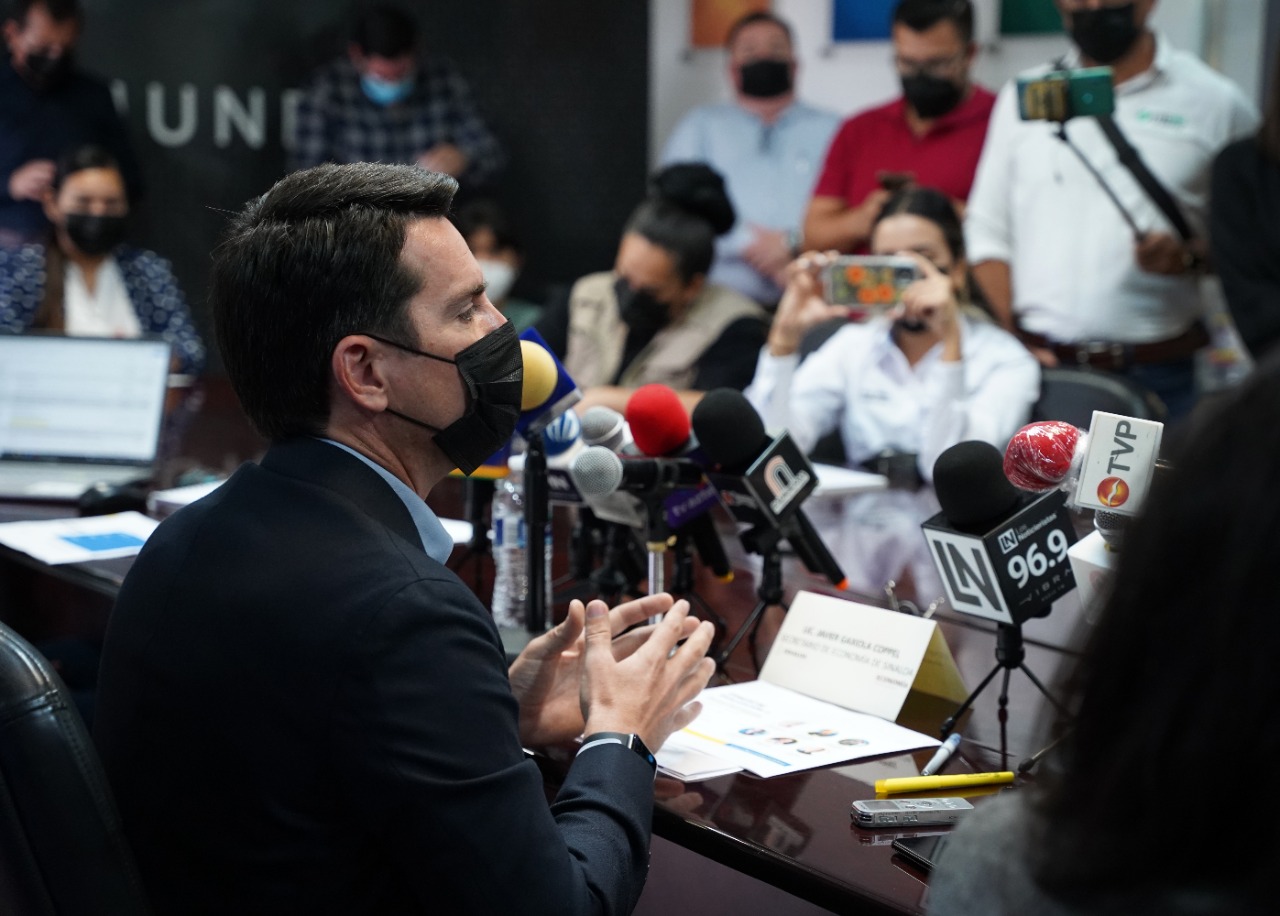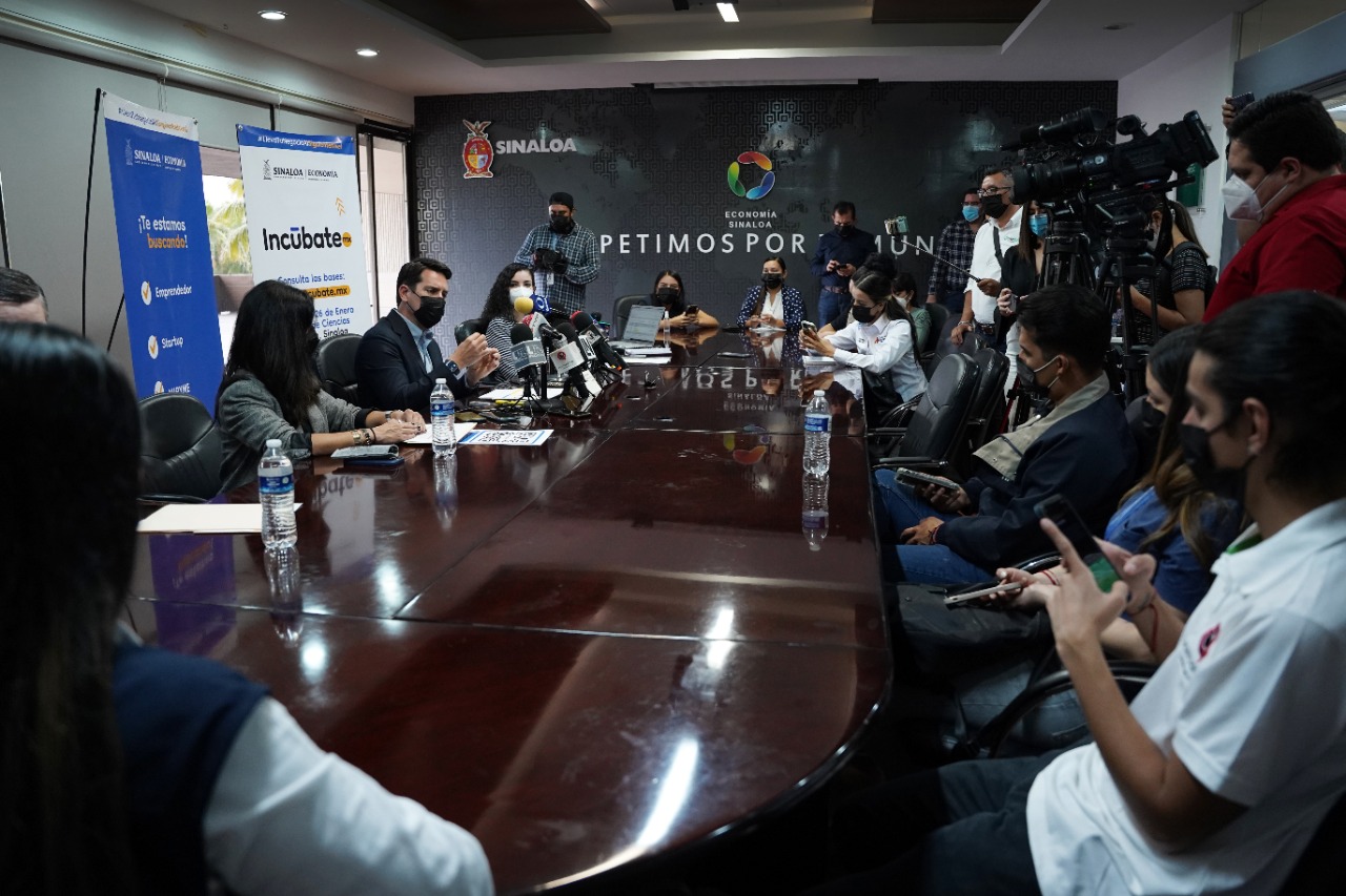 Culiacán, Sinaloa, 20 de Enero de 2022.- “Incúbate Mx” es un programa de emprendimiento que tiene el objetivo de identificar emprendedores, micro, pequeños y medianos empresarios y prestadores de servicios con potencial de desarrollo para acompañarlos en un proceso de pre-incubación y consultoría financiera, anunció en rueda de prensa el Secretario de Economía, Javier Gaxiola Coppel