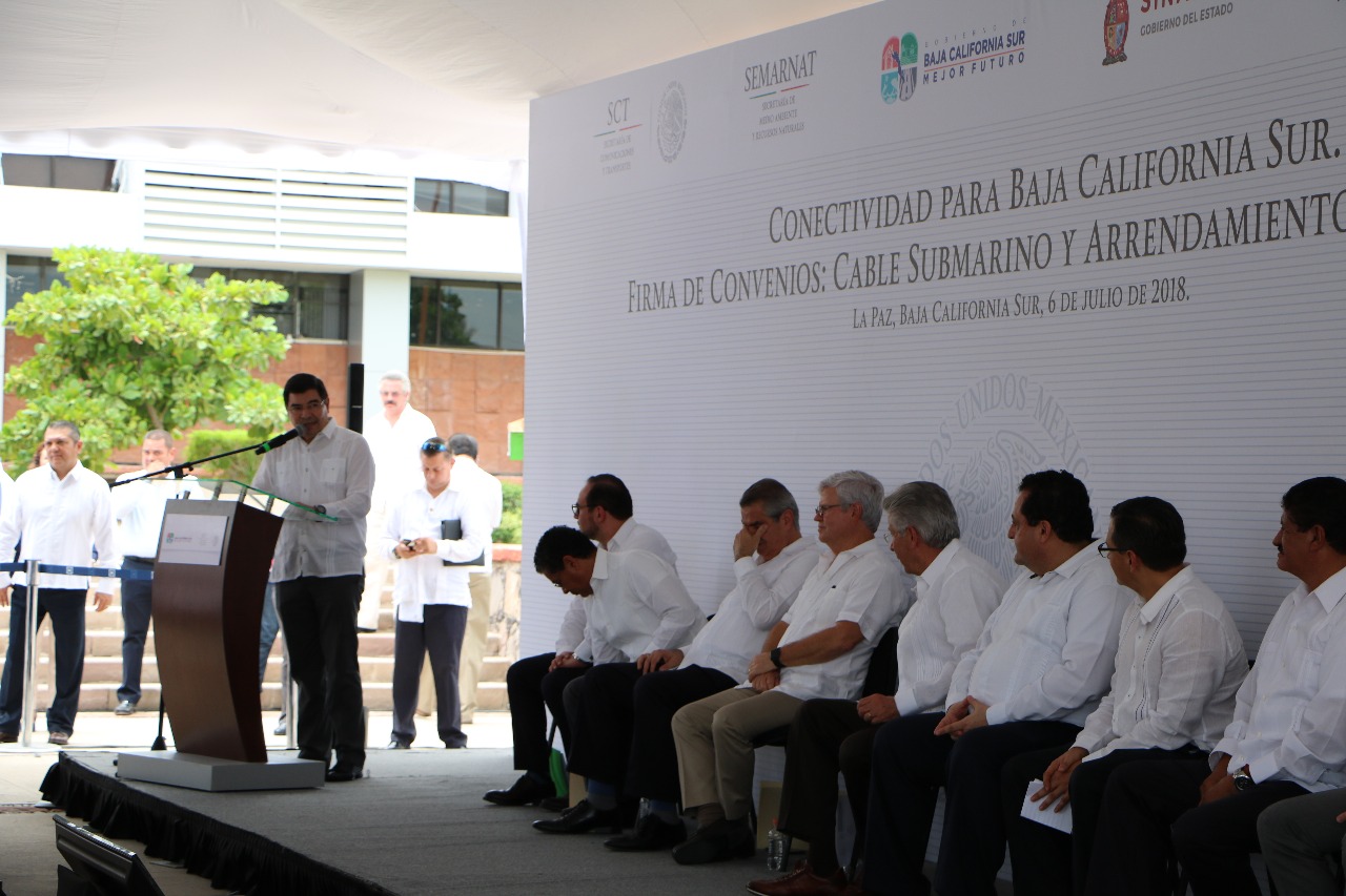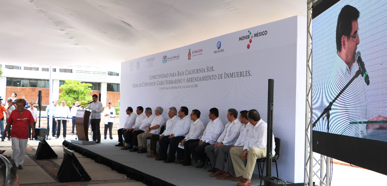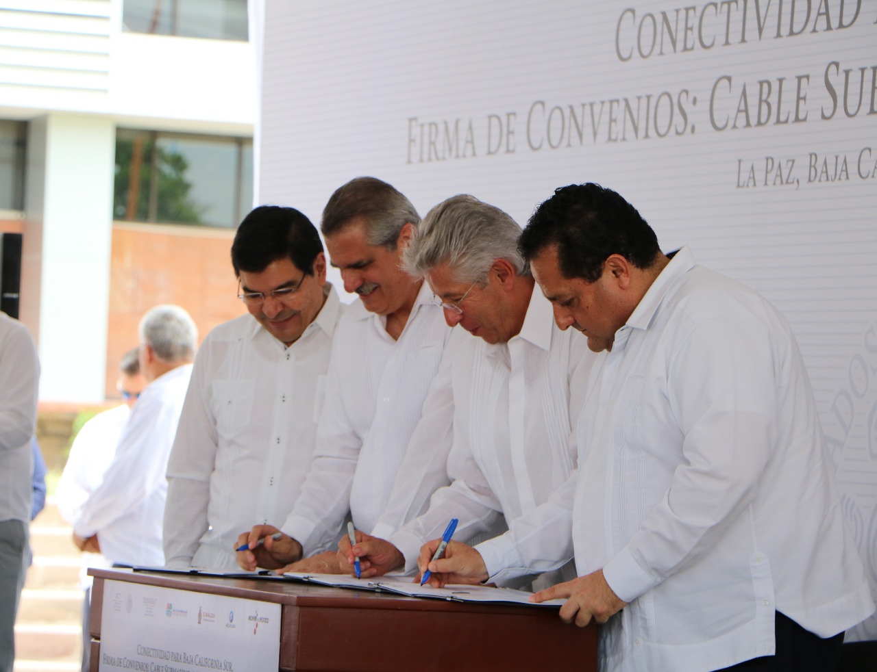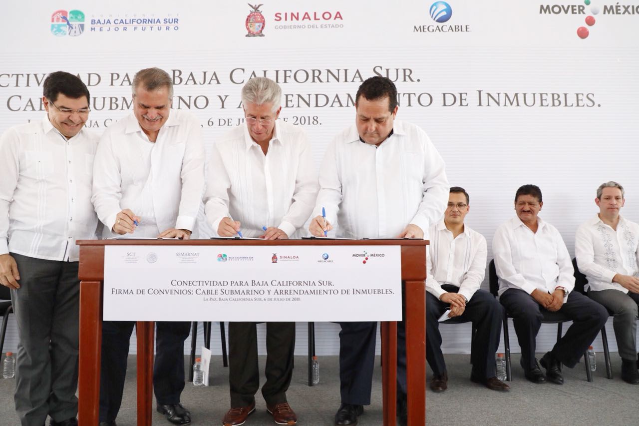 La Paz, Baja California Sur.- Los gobiernos de Sinaloa, Baja California Sur, Megacable y la Secretaría de Comunicaciones y Transportes, signaron un convenio de colaboración para conectar el continente con la península vía submarina.