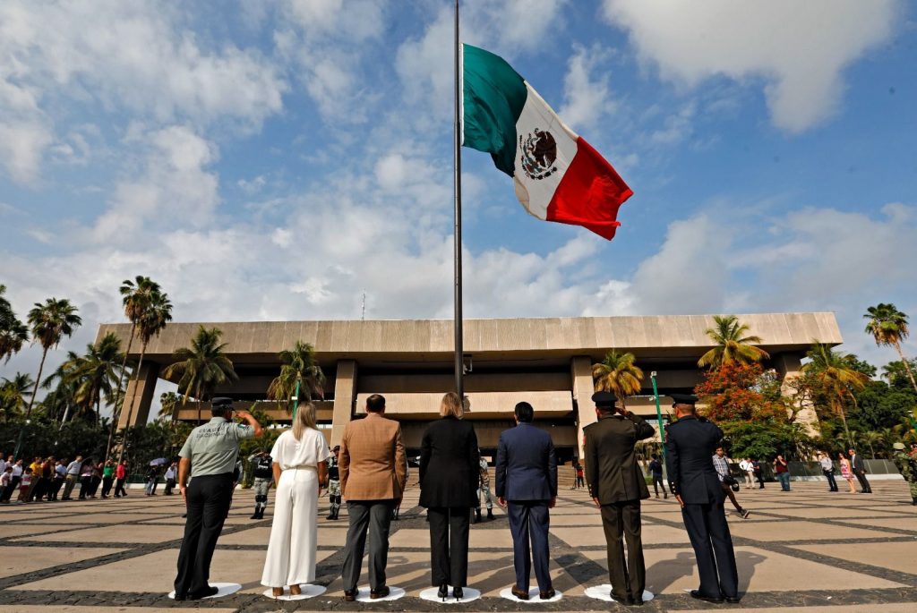 En representación del Poder Ejecutivo encabezó este izamiento la Subsecretaria de Evaluación y Planeación de la Secretaría de Bienestar y Desarrollo Sustentable, Nicté Loi Ceceña Romero, quien acompañada de autoridades civiles y militares realizaron el izamiento de bandera a media asta con honores de ordenanza y acto seguido entonación del himno nacional mexicano.