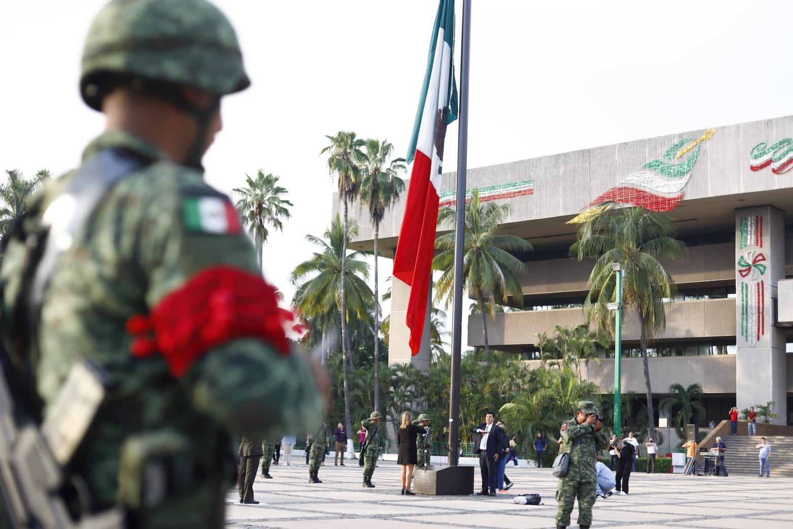 Culiacán, Sinaloa, 27 de septiembre del 2022.- Autoridades civiles y militares conmemoraron el aniversario número 201 de la Consumación de la Independencia de México con un izamiento de bandera a toda asta y con Honores de Ordenanza en la plaza cívica de Palacio de Gobierno.