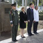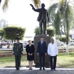 El secretario de Desarrollo Sustentable, Carlos Gandarilla García encabezó dicha ceremonia en representación del Poder Ejecutivo, e izó la bandera nacional a toda asta, para enseguida montar una guardia de honor ante el monumento al también conocido como Benemérito de las Américas, junto con la presidenta de la Comisión de Equidad, Género y Familia del Congreso del Estado, la diputada Francisca Abelló Jordá; del presidente municipal de Culiacán, Jesús Estrada Ferreiro; y del comandante del 94 Batallón de Infantería de la Novena Zona Militar, Coronel Claudio Edmundo Huízar de la Torre.