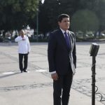 Culiacán, Sinaloa, a 21 de marzo del 2020.- Para conmemorar el 214 aniversario del natalicio de Benito Juárez García, se llevó a cabo en la explanada del Palacio de Gobierno un acto cívico con la representación de los Poderes Ejecutivo, Legislativo y autoridades civiles y militares.