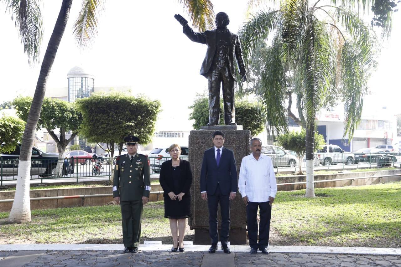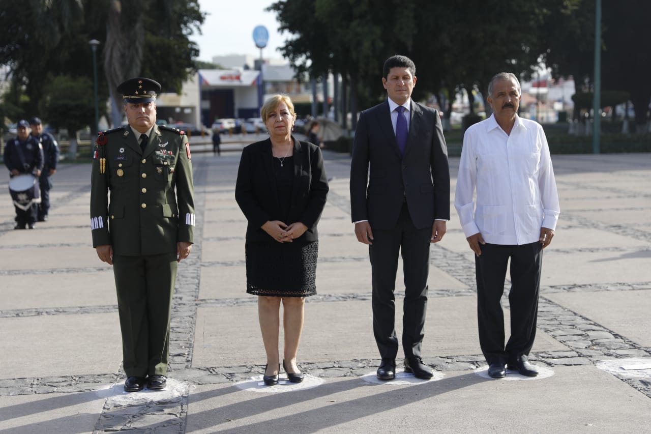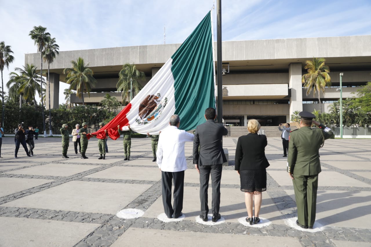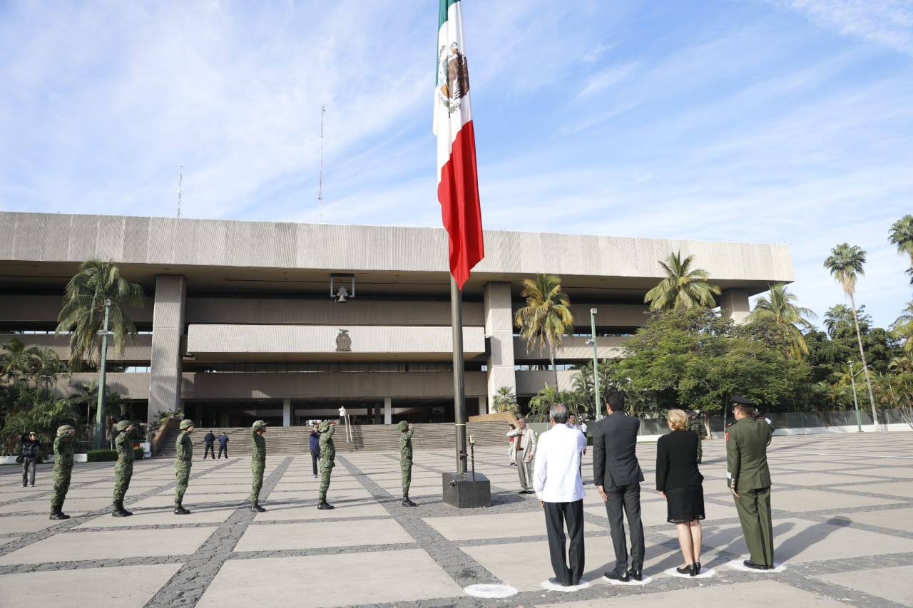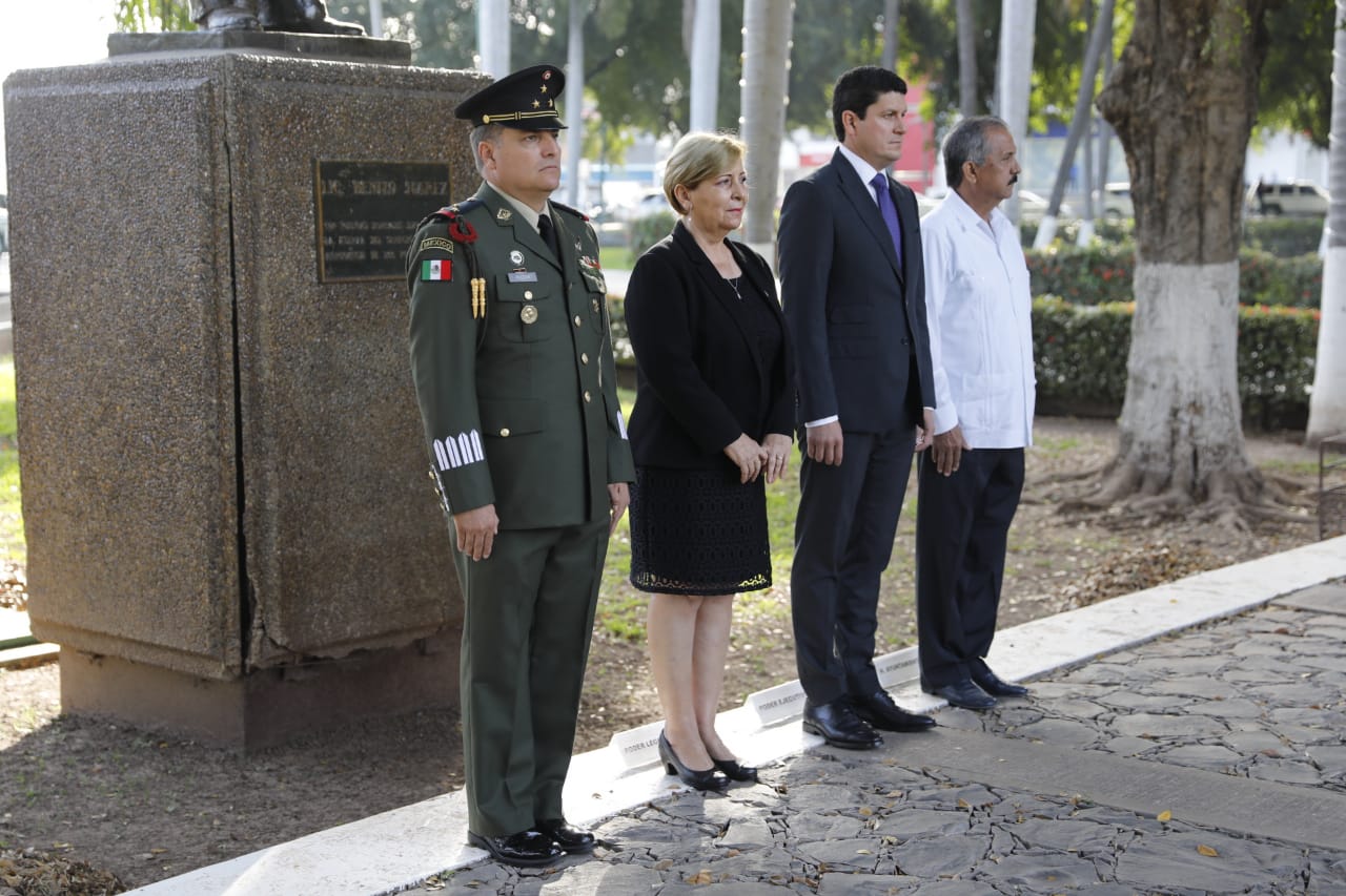 El secretario de Desarrollo Sustentable, Carlos Gandarilla García encabezó dicha ceremonia en representación del Poder Ejecutivo, e izó la bandera nacional a toda asta, para enseguida montar una guardia de honor ante el monumento al también conocido como Benemérito de las Américas, junto con la presidenta de la Comisión de Equidad, Género y Familia del Congreso del Estado, la diputada Francisca Abelló Jordá; del presidente municipal de Culiacán, Jesús Estrada Ferreiro; y del comandante del 94 Batallón de Infantería de la Novena Zona Militar, Coronel Claudio Edmundo Huízar de la Torre.