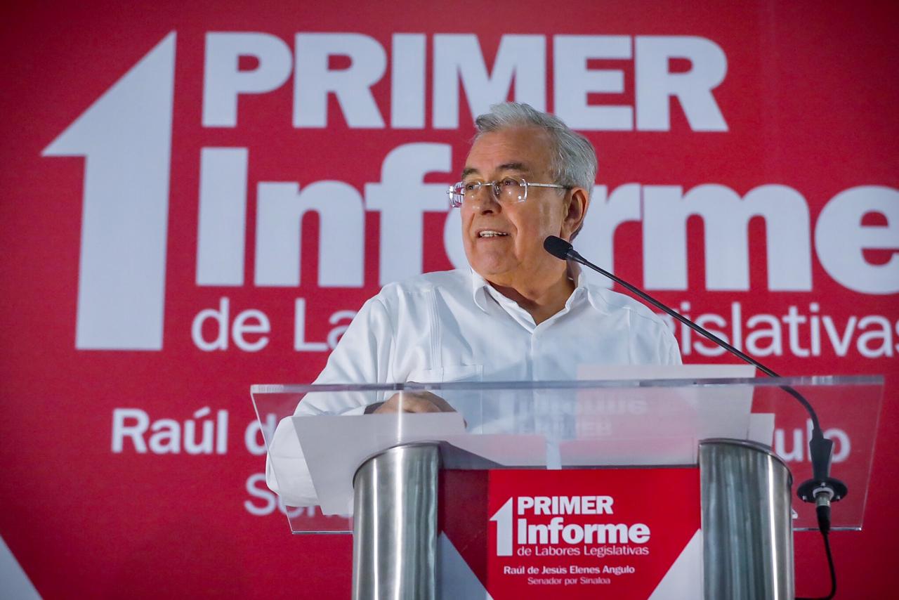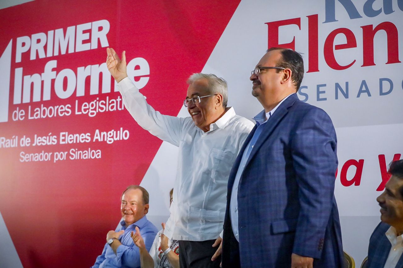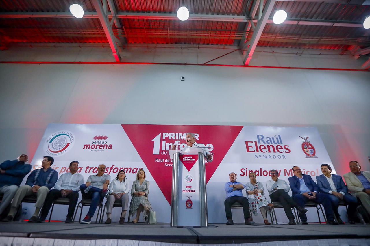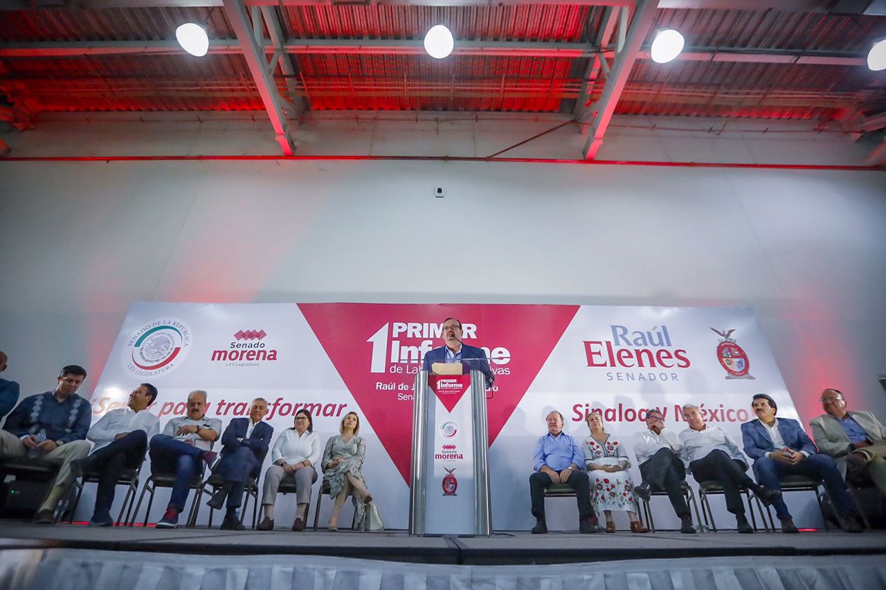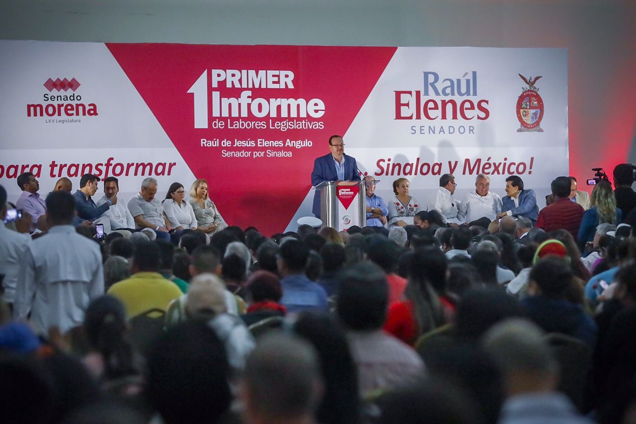 Mazatlán, Sinaloa, a 04 de Febrero de 2023.- Con la firme voluntad de brindar certeza a los ciudadanos de que están adecuadamente representados en la cámara alta del Congreso de la Unión, el Senador Raúl de Jesús Elenes Angulo, presentó esta mañana su Primer Informe de Labores Legislativas en el Centro de Convenciones de Mazatlán, espacio que concentró a cientos de sinaloenses y que tuvo como invitados de honor al Gobernador Rubén Rocha Moya, a Ricardo Monreal Ávila, Presidente de la Junta de Coordinación Política del Senado y al Alcalde de Mazatlán, Edgar Augusto González Zatarain, entre otros personajes de la política nacional.