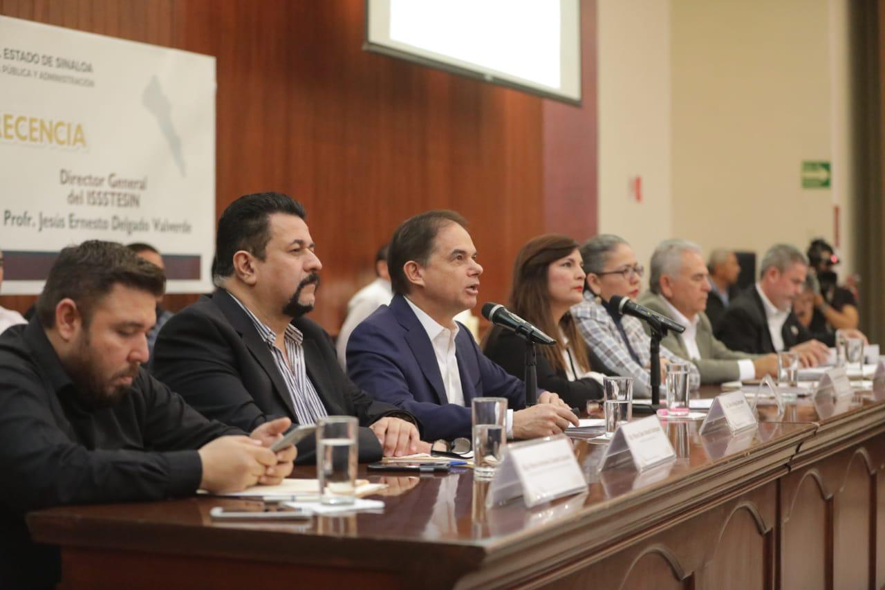 Por su parte, el director del ISSSTESIN, Jesús Ernesto Delgado Valverde, informó que actualmente se cubre una nómina quincenal de 9 mil 466 pensiones por jubilación, viudez, vejez, invalidez, orfandad y ascendencia. Por ello, del 100 por ciento del presupuesto autorizado para el instituto, el 98 por ciento se gasta en pensiones y servicios médicos, y sólo el 2 por ciento es para el gasto operativo del mismo, explicó.