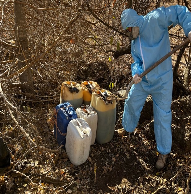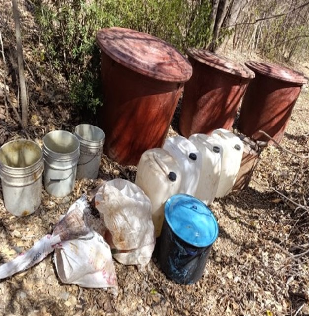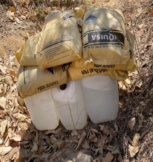 Se localizaron e inhabilitaron 12 áreas de concentración de material diverso para la elaboración de metanfetamina, donde aseguraron 6,780 litros y 400 kilos de sustancias químicas para la elaboración de la droga, dos reactores de síntesis orgánica, tres condensadores y un destilador. La afectación económica a las organizaciones delictivas fue de 159 millones de pesos.