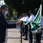Culiacán, Sinaloa a 15 de septiembre de 2020.- El Secretario General de Gobierno, Gonzalo Gómez Flores, en representación del gobernador Quirino Ordaz Coppel, encabezó el izamiento de la bandera nacional a toda asta en la Plaza Cívica de Palacio de Gobierno, en conmemoración del 210 Aniversario de la Independencia de México.