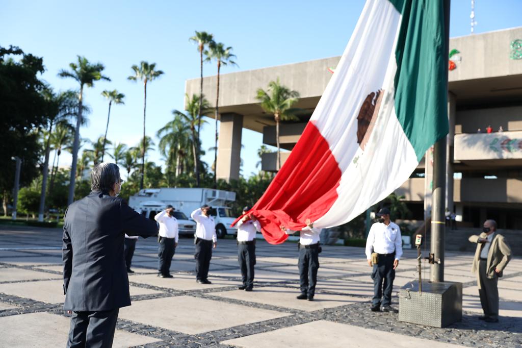 – El Secretario General de Gobierno, Gonzalo Gómez Flores, en representación del Gobernador Quirino Ordaz Coppel, dirigió el izamiento de bandera nacional a toda asta en la Plaza Cívica de Palacio de Gobierno.