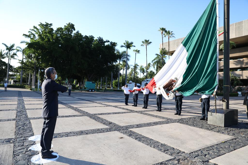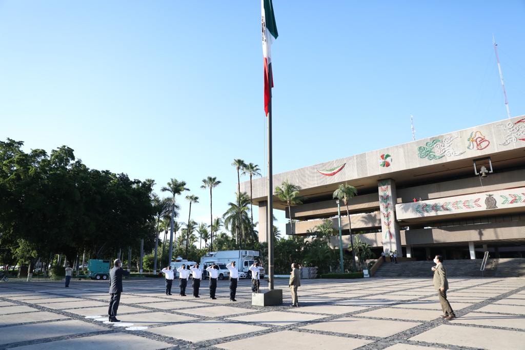 – El Secretario General de Gobierno, Gonzalo Gómez Flores, en representación del Gobernador Quirino Ordaz Coppel, dirigió el izamiento de bandera nacional a toda asta en la Plaza Cívica de Palacio de Gobierno.