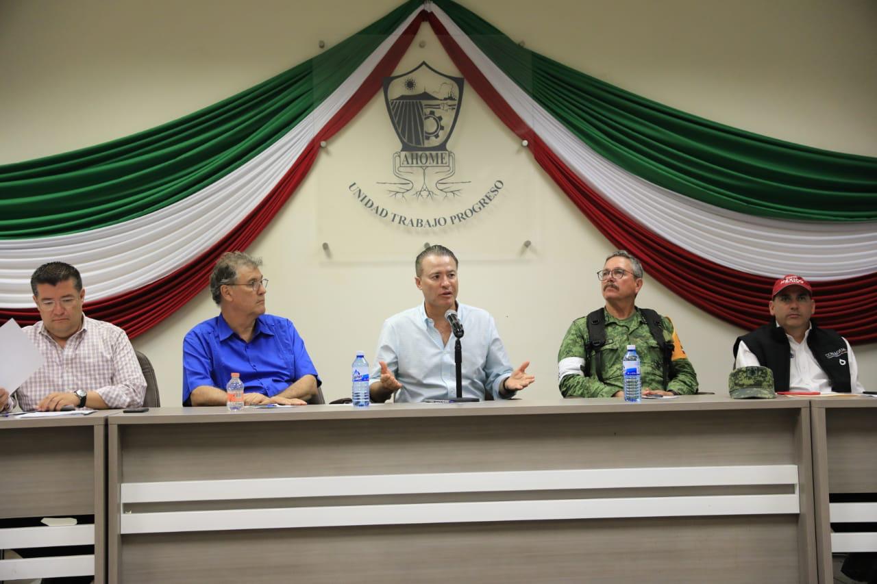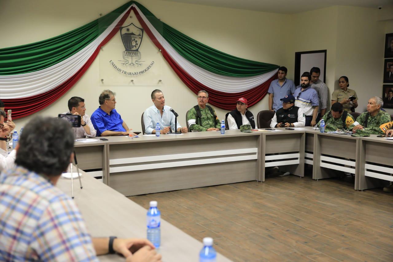 De nueva cuenta, el mandatario estatal encabezó esta reunión de trabajo celebrada en el Salón de Cabildo del Ayuntamiento de Ahome, donde todos los representantes de todas las autoridades participantes en el auxilio a la población afectada, rindieron un informe de las acciones realizadas.
