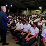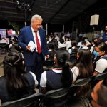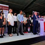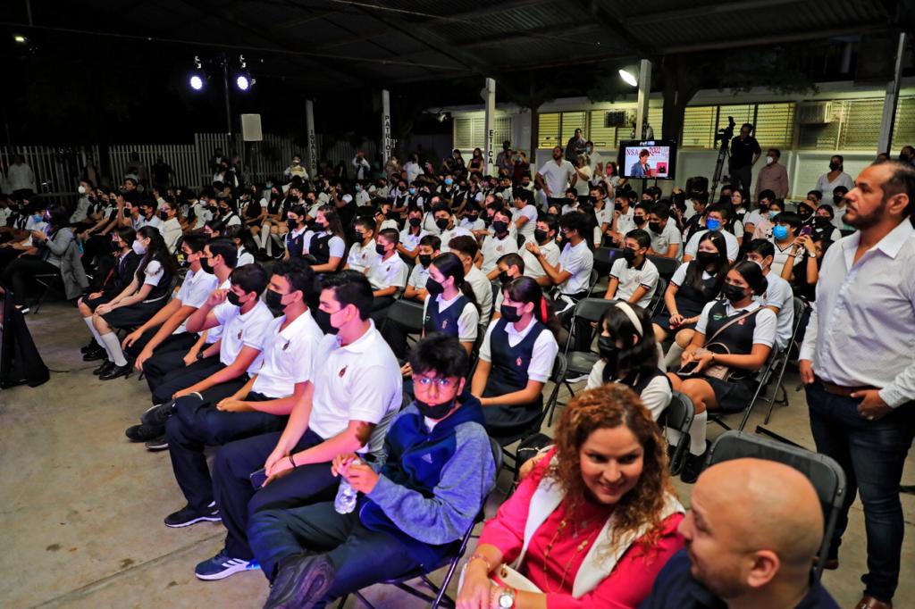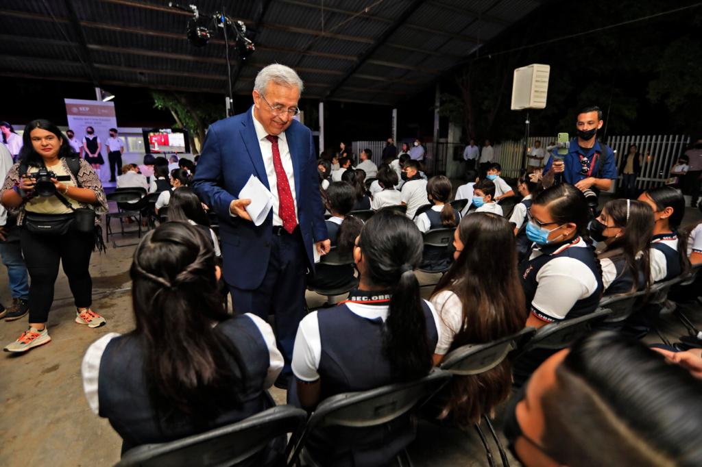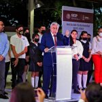 «Vamos a iniciar un ciclo escolar con una matrícula crecida respecto el ciclo anterior. Vamos a tener 575 mil niñas y niños en la básica y adolescentes, que son en este caso la secundaria, tenemos muchos adolescentes. Vamos a tener 136 mil jóvenes en la media superior y vamos a tener 129 mil en la superior. De la básica son 5,376 escuelas, de las cuales Presidente, Secretaria, solo 43 no van a trabajar presencial. Esas 43 las estamos reparando. Estaremos en condiciones de entregarlas un poquito más adelante. Vamos a abrazar con mucho entusiasmo este nuevo año que empieza con un nuevo plan de estudios. Felicito a la Secretaria Delfina y a los especialistas que diseñaron el plan de estudios», expresó el Gobernador.