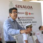 Guasave, Sinaloa.- Desde la playa de Bellavista, el gobernador Rubén Rocha Moya puso en marcha el Operativo de Seguridad y Protección Civil por Semana Santa 2022, en el cual participarán más de 10 mil elementos de las distintas corporaciones de seguridad pública, Protección Civil, organizaciones civiles de socorro como Cruz Roja y Bomberos, además de la colaboración del Ejército Mexicano, Marina Armada de México y Guardia Nacional, para dar protección, asistencia y auxilio a los dos millones de visitantes que se estima acudan a los diferentes puntos de recreación que hay en el estado, como playas, ríos, balnearios y centros ceremoniales.