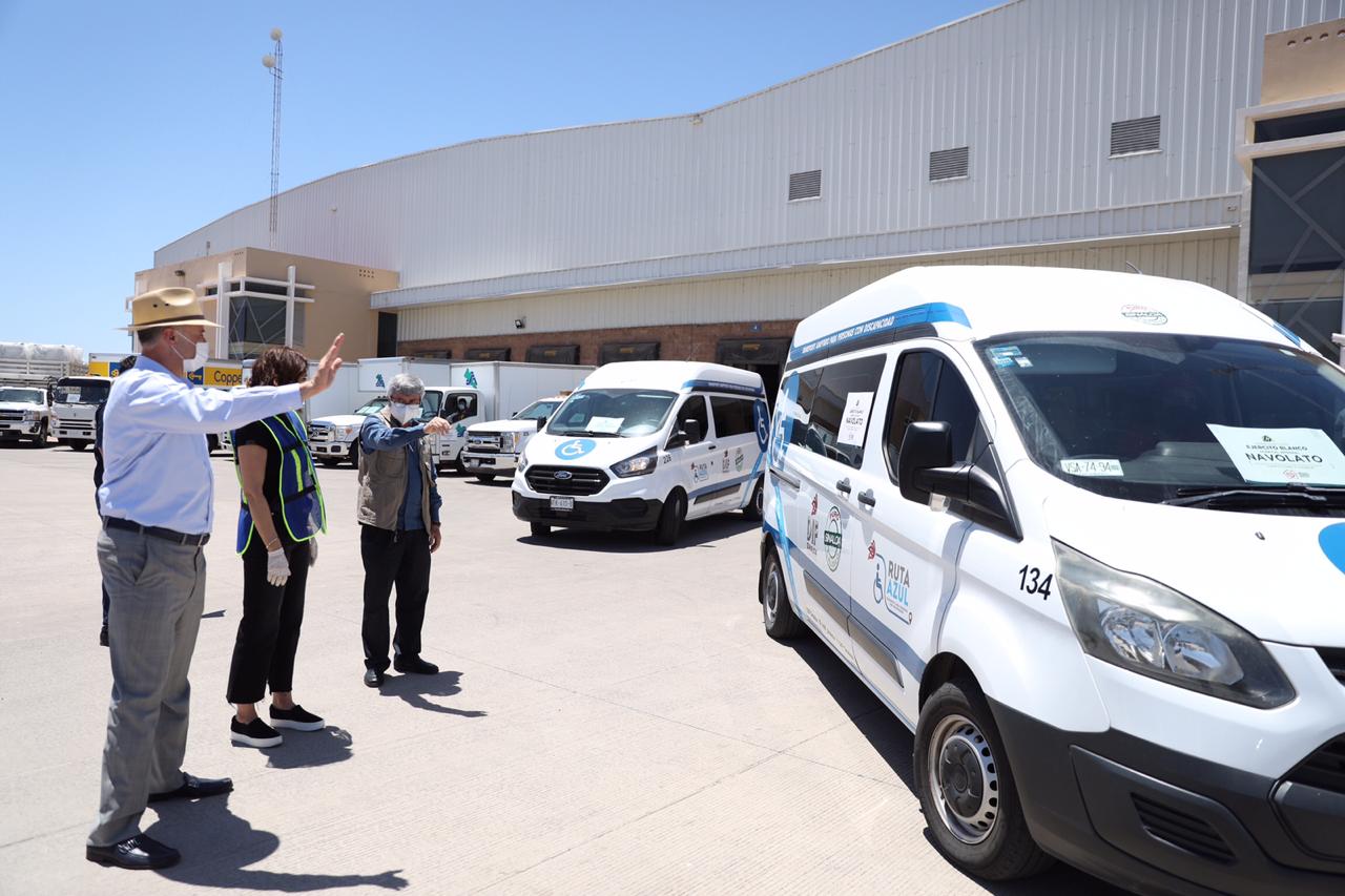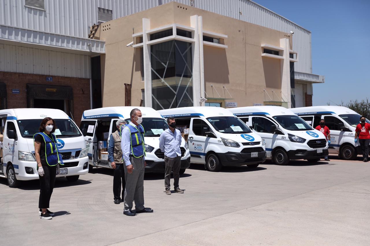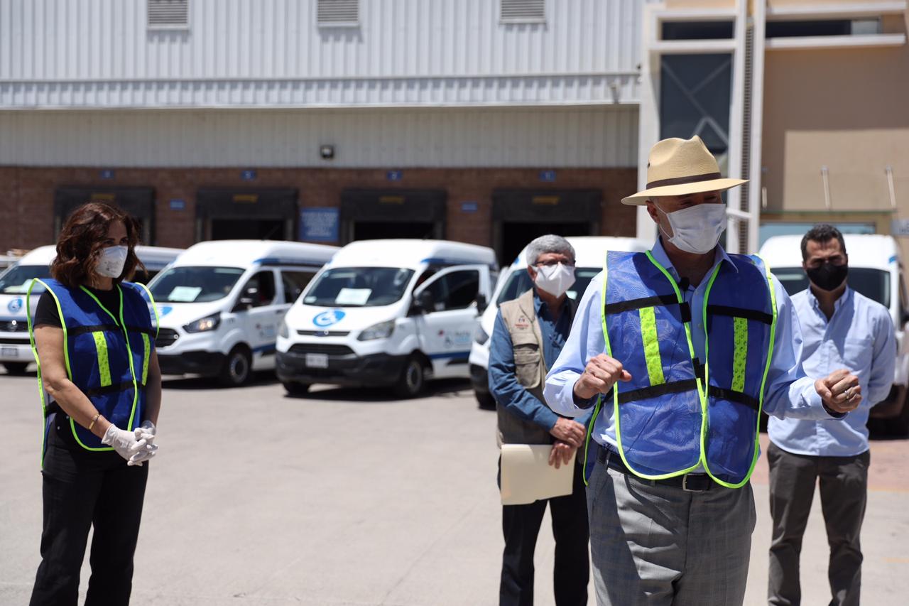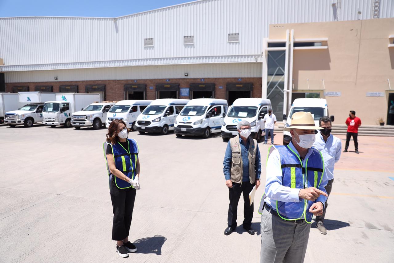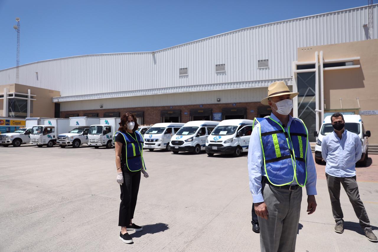 “Vamos ahorita a echar a caminar todo este equipo de transporte que se puede apreciar para hacer una distribución de materiales, de equipamiento, de insumos médicos para proteger más a nuestros trabajadores del sector salud, a los médicos, enfermeras, enfermeros y esto es muy importante, así como lo hicimos hace una semana no dejaremos de seguir apoyándoles para que tengan una mayor protección, que no le falten los medios, las herramientas para poder atender a quien tenga este virus o esté ya hospitalizado sobre todo”, dijo Ordaz Coppel, quien estuvo acompañado por su esposa, Rosy Fuentes de Ordaz; por el secretario de Salud, Efrén Encinas Torres y por el empresario Adrián Coppel Calvo.