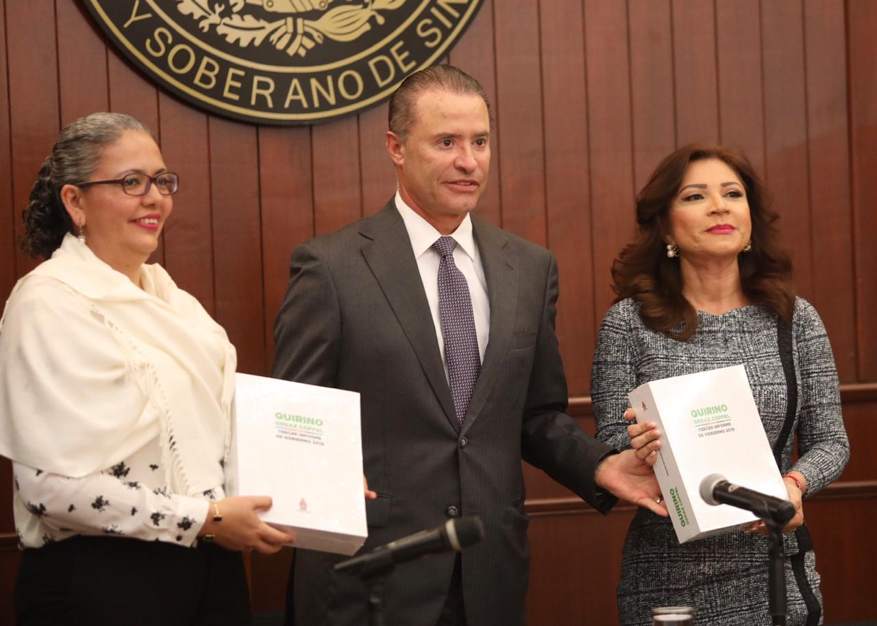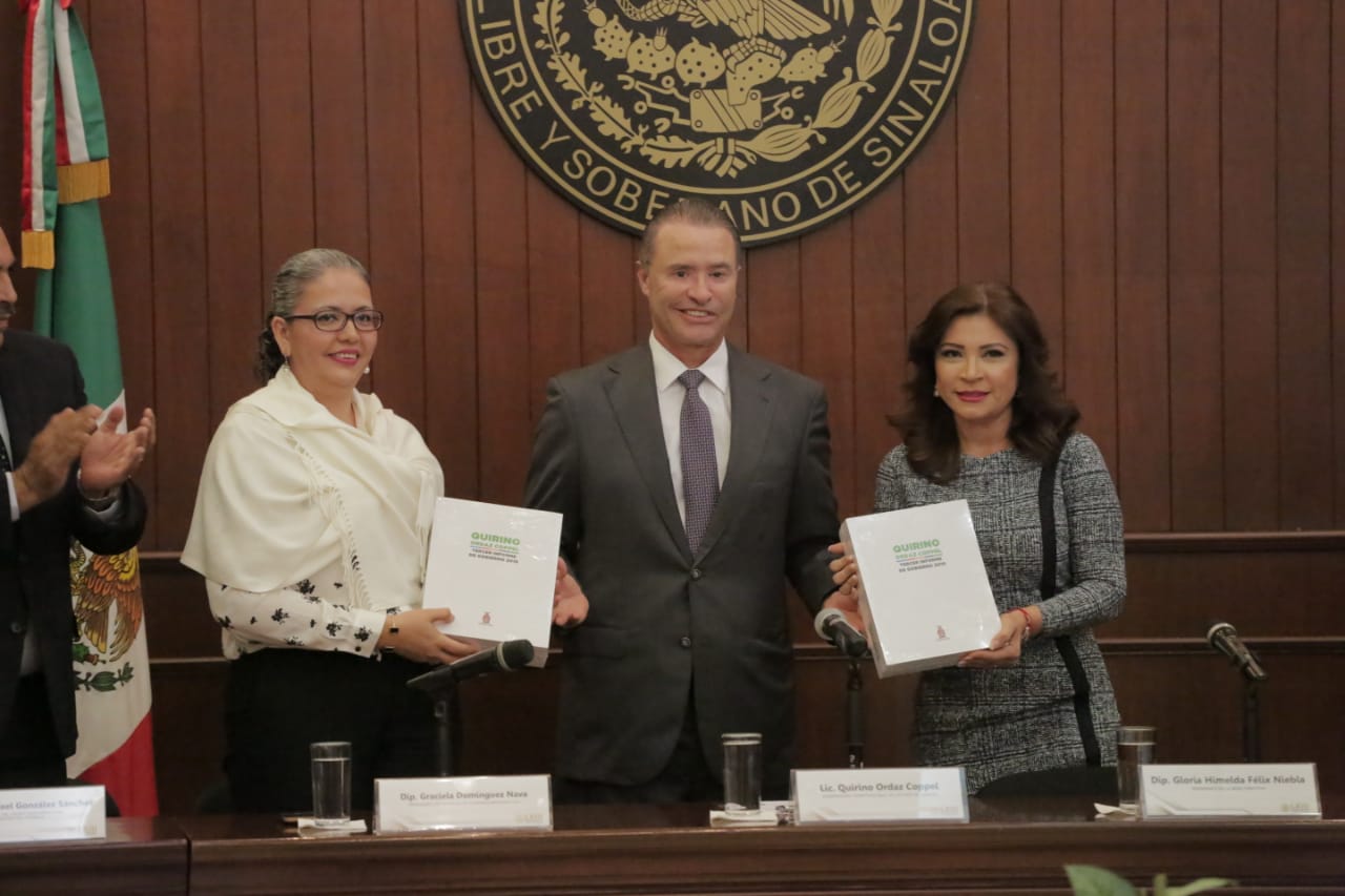Al recibir el documento, la presidenta de la Mesa Directiva, la diputada Gloria Himelda Félix Niebla, señaló que con este acto de entrega de Informe, se materializa uno de los ejercicios de rendición de cuentas, de acuerdo con las exigencias de la sociedad.