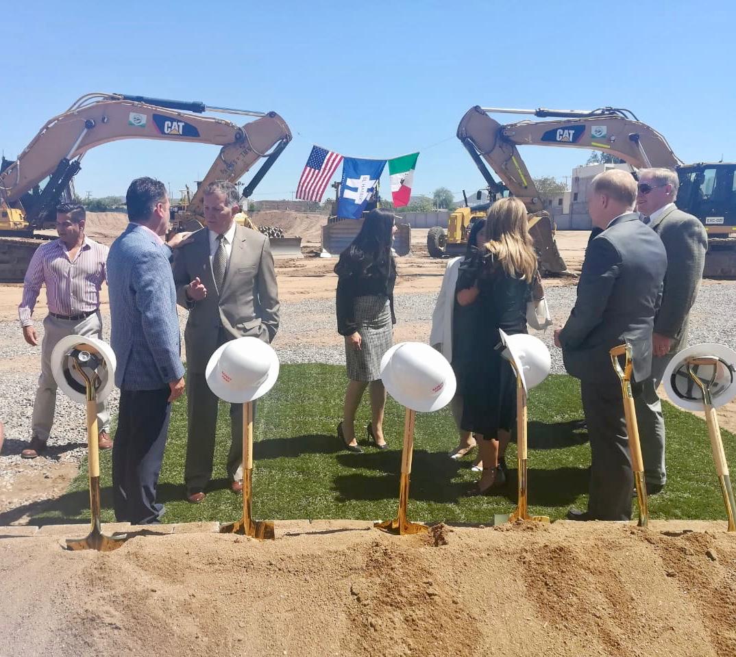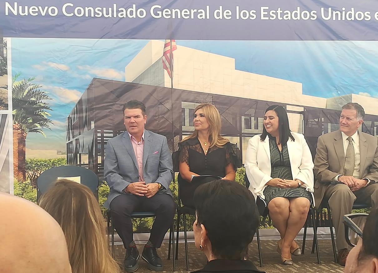 Mayo 13, 2019.- Con el firme objetivo de estrechar lazos de cooperación con el Gobierno de Estados Unidos, el Secretario de Turismo Óscar Pérez Barros y el Secretario de Seguridad Pública Teniente Coronel Cristóbal Castañeda acompañaron a la Cónsul General de Estados Unidos en Sonora, Elia E. Tello y a la Gobernadora de Sonora Claudia Pavlovich, en la ceremonia de colocación de la Primera Piedra de lo que será el nuevo Consulado.
