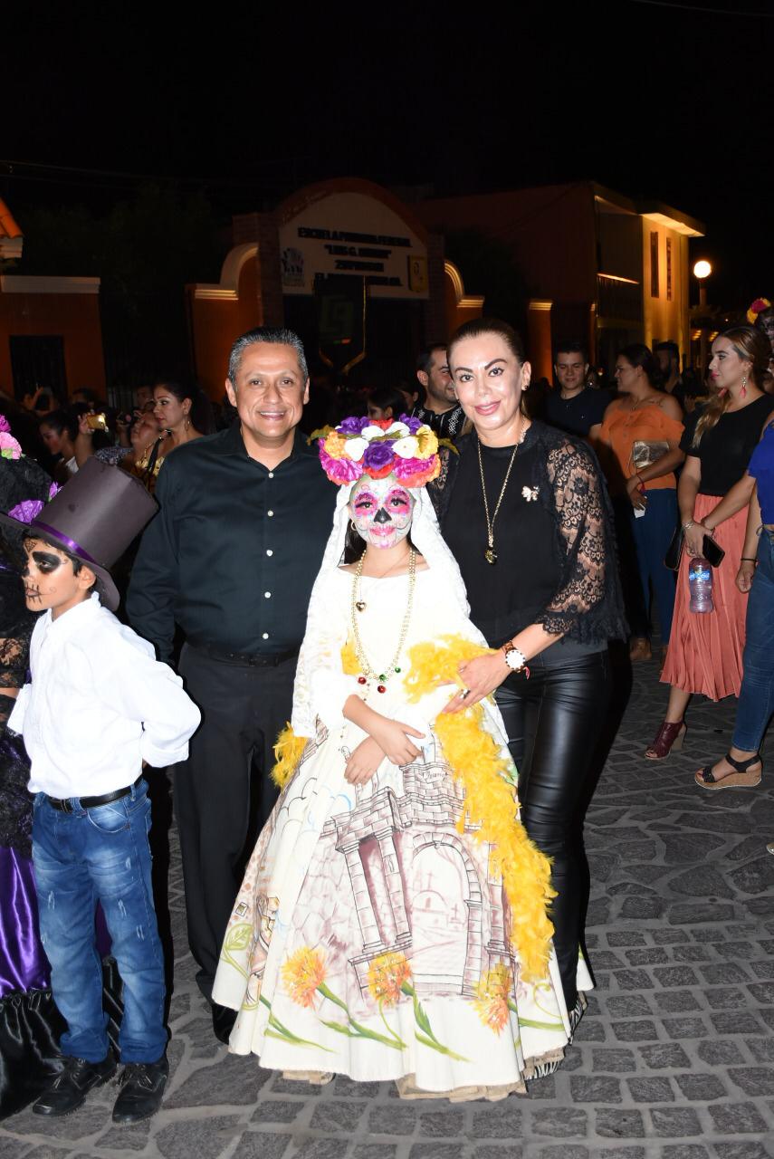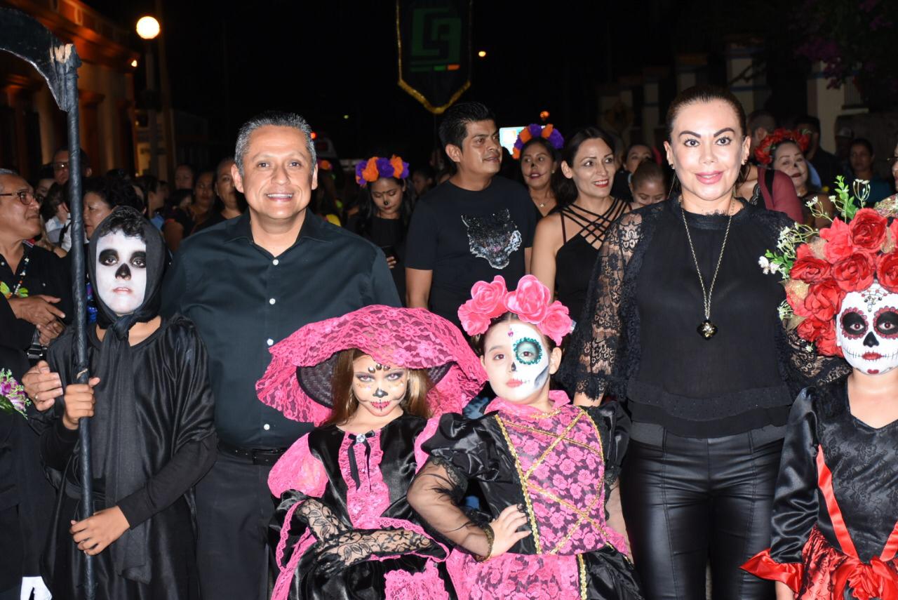Niños, jóvenes y adultos, caracterizados como catrinas y catrines, iniciaron la tradicional callejoneada que partió desde el Museo de Lola Beltrán a ritmo de música de banda, y en compañía del Alcalde Dr. Manuel Antonio Pineda Domínguez, acompañado de su esposa, María Luisa Benítez de Pineda, presidenta del Sistema DIF, así como de funcionarios y familias.