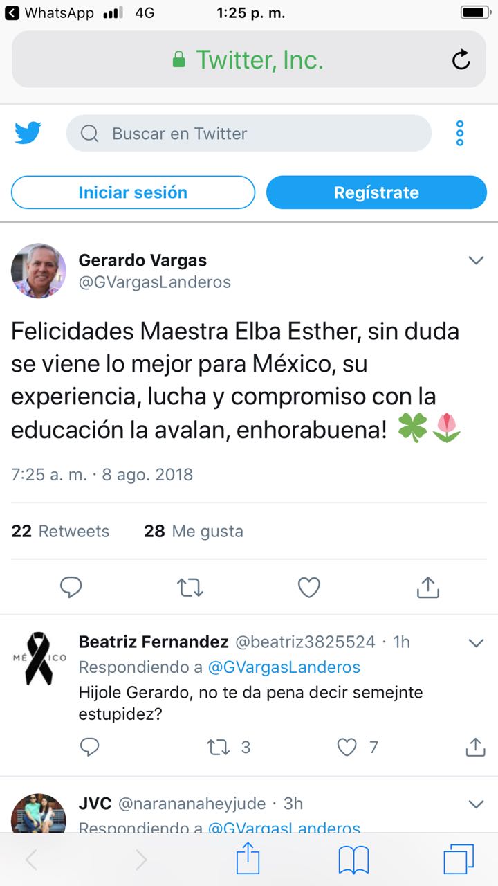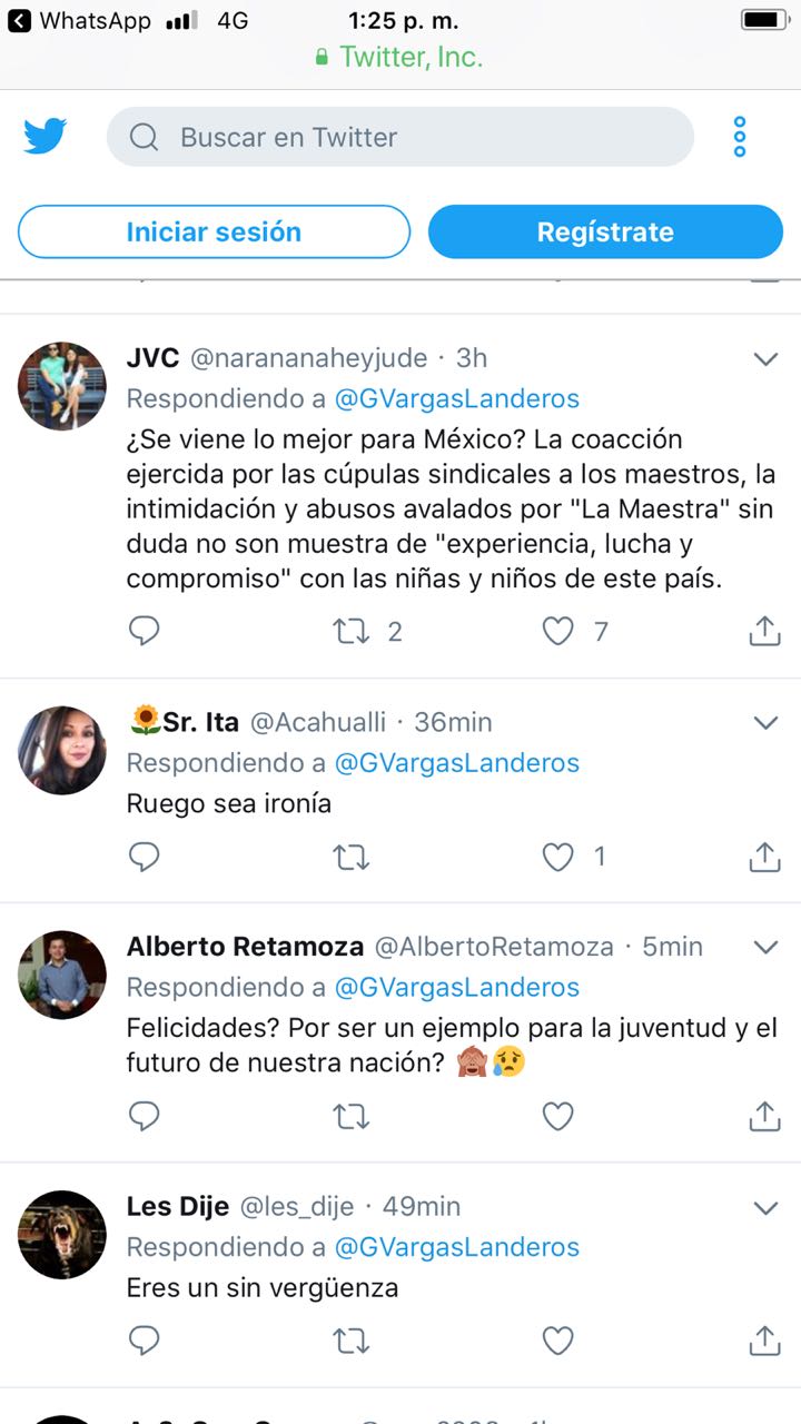 El ex secretario general de Gobierno en Sinaloa, Gerardo Vargas Landeros, felicitó vía Twitter a la ex dirigente magisterial Elba Esther Gordillo por su liberación, y en la misma red, está siendo muy criticado por sus seguidores.