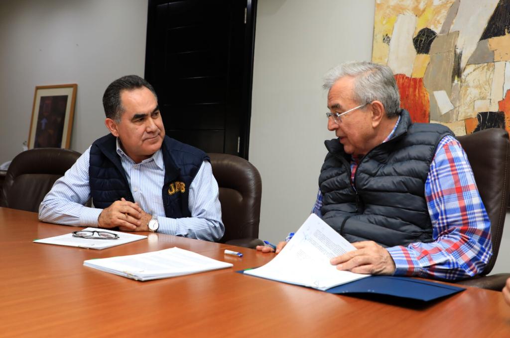 Culiacán, Sinaloa, a 10 de Enero de 2023.- Como parte de la política estatal de atención prioritaria al sector educativo, esta mañana, el Gobernador Rubén Rocha Moya sostuvo una reunión de trabajo con Jesús Madueña Molina, Rector de la Universidad Autónoma de Sinaloa, en la que se realizó la firma del convenio de apoyo financiero correspondiente al año 2023, que se firma anualmente debido a las modificaciones que sufren las asignaciones de los presupuestos, por lo que a través de este instrumento, se formalizan los subsidios estatales y federales que se envían mensualmente a esta institución educativa.