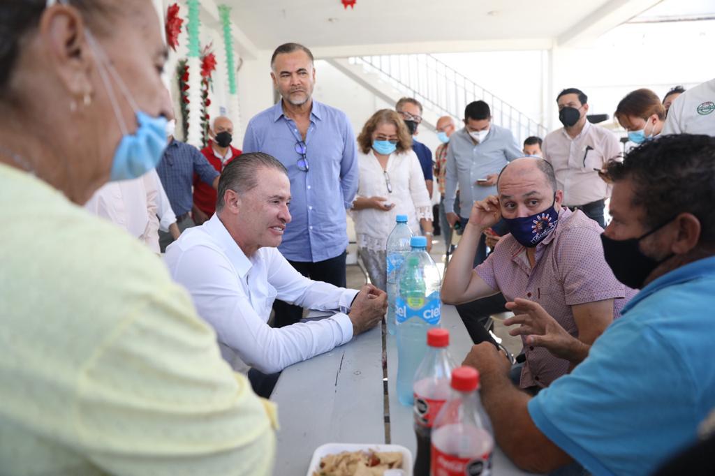 Mazatlán, Sinaloa, a 14 de diciembre de 2020.- Al sostener un encuentro con dirigentes de pescadores y trabajadores de los muelles del Parque Bonfil, el gobernador Quirino Ordaz Coppel hizo el compromiso de que su gobierno seguirá reforzando el Programa de Empleo Temporal, además se ampliará el programa de apoyo para las artes de pesca, y conjuntamente con los pescadores ribereños se implementará de nueva cuenta el programa de sustitución de motores marinos, esto para compensar el recorte de apoyos al sector por parte de la Federación.