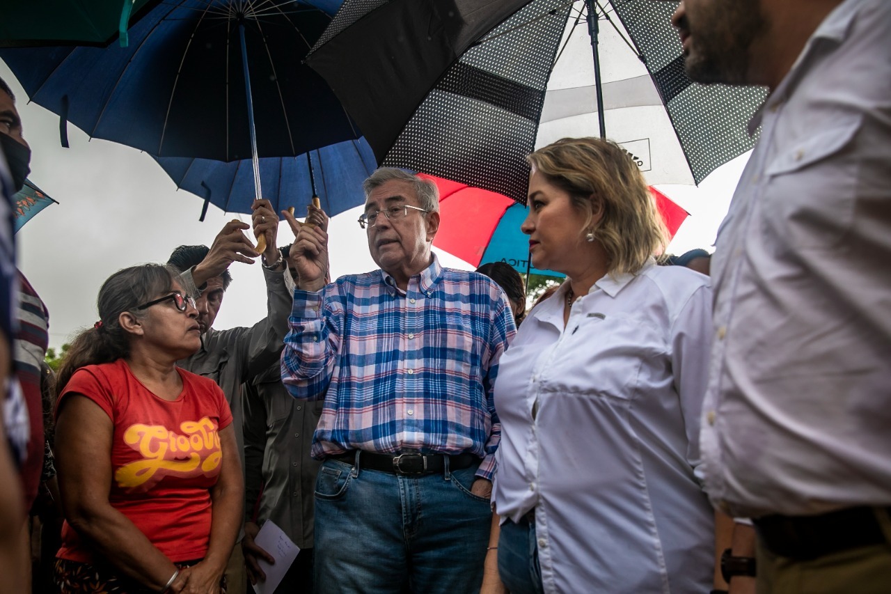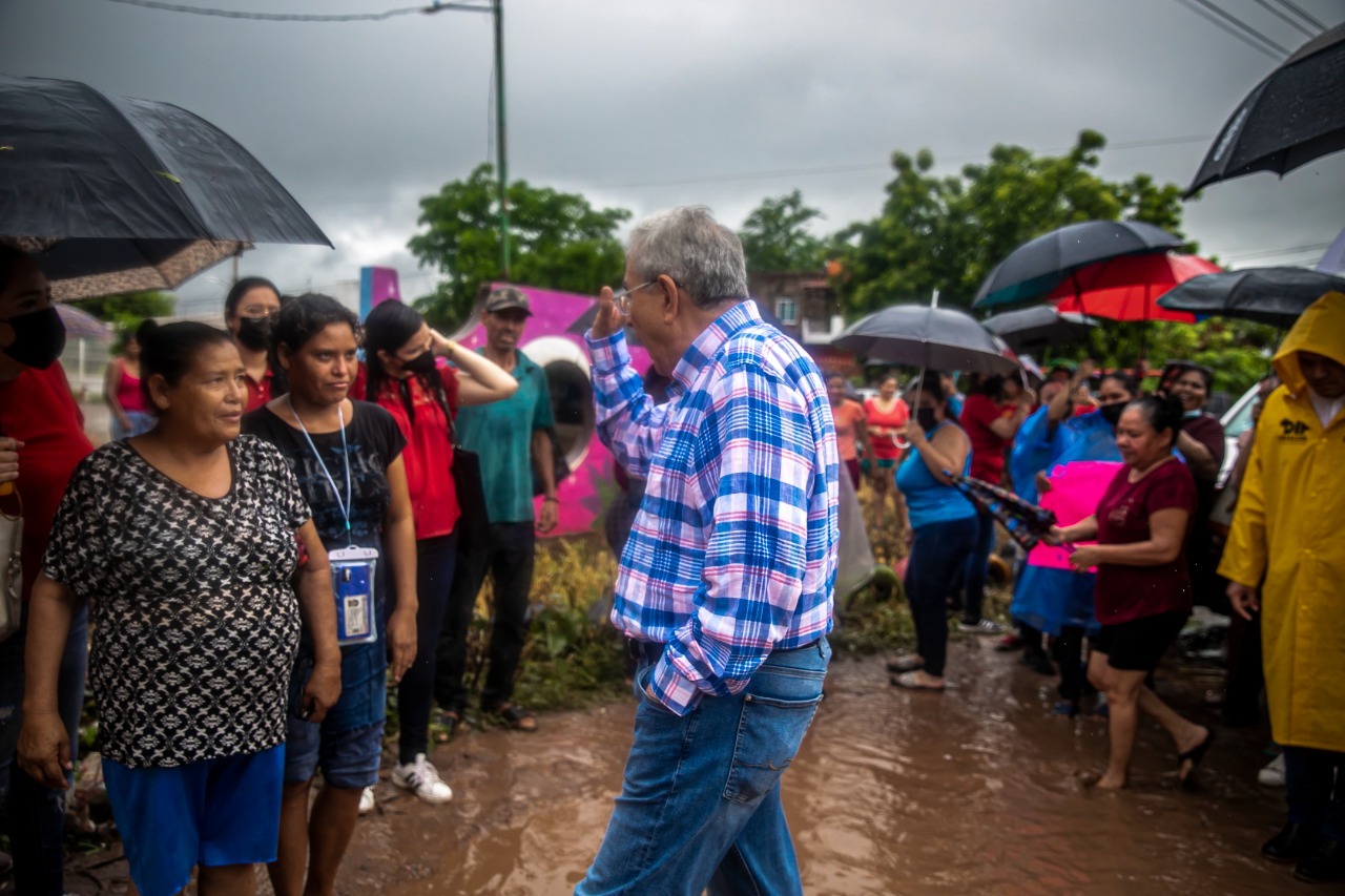 Culiacán, Sinaloa, a 30 de agosto de 2022.- Derivado de las fuertes lluvias que se están presentando en todo el estado, especialmente en la zona centro del estado, el Gobernador Rubén Rocha Moya acudió a supervisar la entrega de apoyos a los vecinos damnificados de la colonia Los Mezcales, acompañado de Héctor Modesto Félix Carrillo, Director del Instituto Estatal de Protección Civil, Eneyda Rocha Ruiz, Presidente del Sistema DIF Sinaloa y Juan de Dios Gámez, Alcalde de Culiacán.