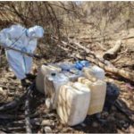 Durante trabajos de reconocimiento en los municipios de Culiacán y Cosalá, personal militar localizó asentamientos utilizados para la fabricación de drogas sintéticas, donde se encontraron diversas sustancias químicas, centrifugadoras, coladores, bidones, tambos, barriles, costales, condensadores y tinas.