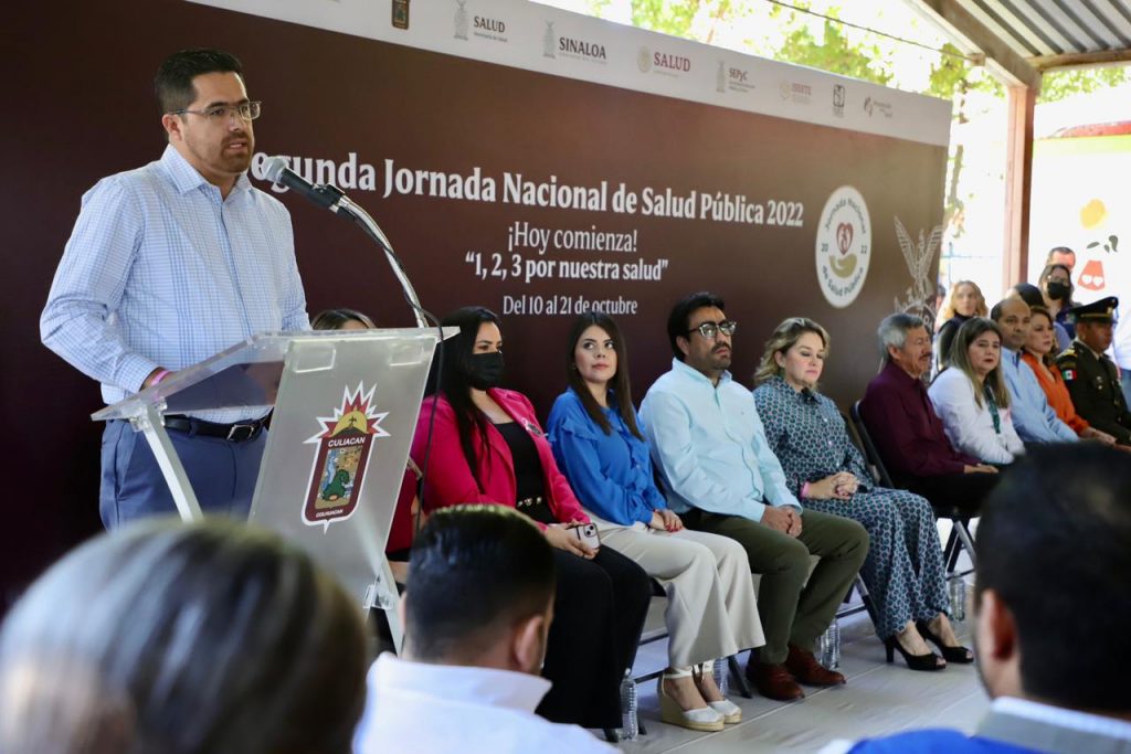 Culiacán Sinaloa, martes 11 de octubre de 2022*.- Con el lema “1, 2, 3 por tu salud ¡Actuemos ya!” se inició en Culiacán la Segunda Jornada Nacional de Salud Pública 2022, la cual tiene la finalidad de brindar acciones transversales en beneficio de la salud principalmente de la infancia.